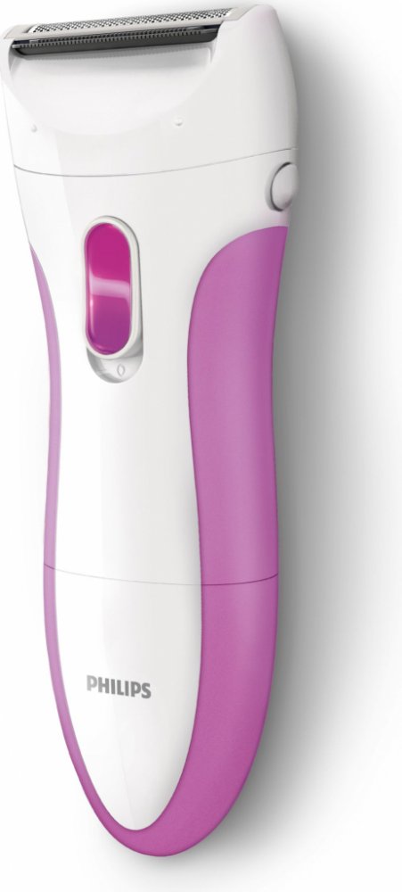 Dámský holicí strojek Philips HP 6341/01 Ladyshave je vodotěsný - lze jej používat ve sprše i na suchou pokožku. Má Ergonomický tvar. Jde o bezšňůrové provedení s napájením na baterie (2 tužkové baterie AA, nejsou součástí dodávky). Součástí je i čistící kartáček.