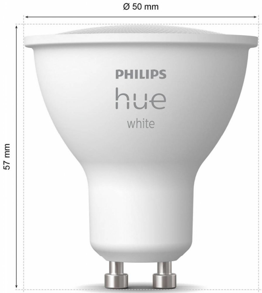 Sada dvou LED žárovek Philips Hue White GU10 – teplá bílá světlo pro ovládání přes Bluetooth a ZigBee Tato žárovka poskytuje příjemné teplá bílá světlo a možnost integrace každé svítilny s objímkou GU10 do inteligentní domácnosti. Podle přání je možné plné propojení s jakýmkoli systémem na bázi ZigBee pomocí mostu a routeru nebo přímé ovládání pomocí stmívače Hue nebo – přes Bluetooth – pomocí sma...