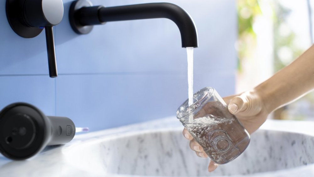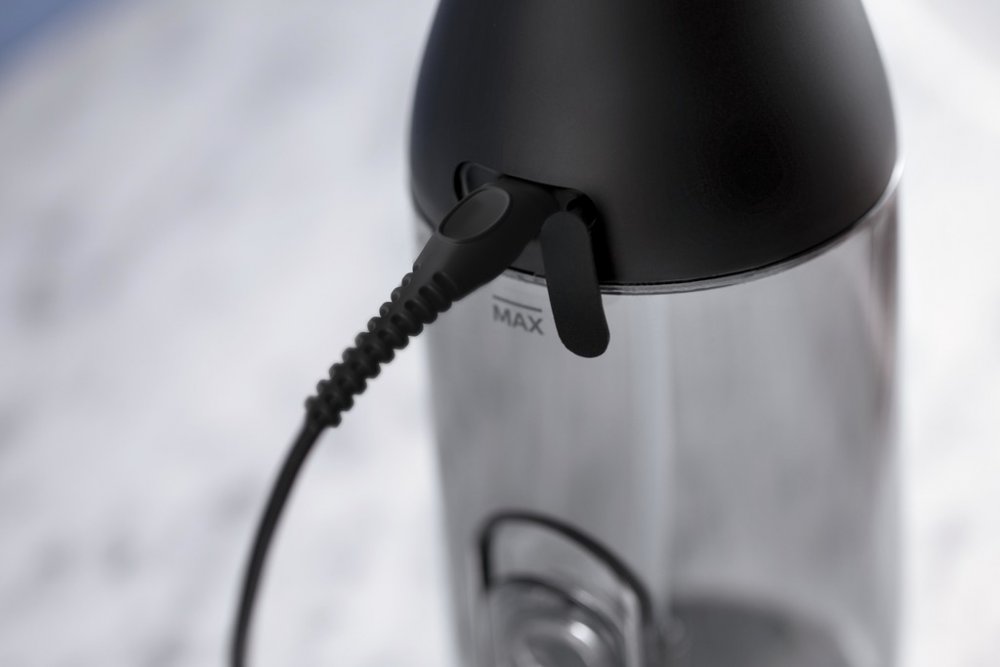 Nádržka o objemu 250 ml pojme dostatek vody na čištění po doporučenou dobu 60 sekund. Chcete-li vodu doplnit, pootočte nádržkou a vyjměte ji nebo použijte boční otvor pro snadné doplňování.
