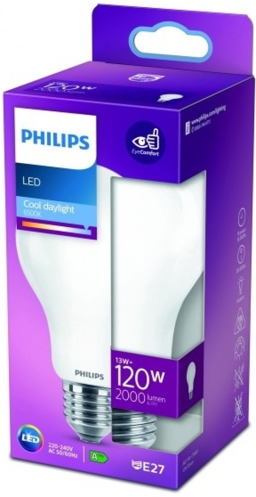Philips LED žárovka E27 120W 6500K 13W opál