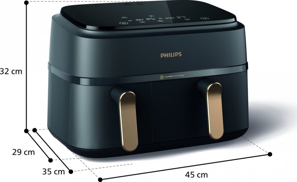 Philips 9 l 2750 W 8 digitální 200 °C vhodné do myčky LED černé 38.25 x 44.39 x 31.42 cm 7.85 kg pro 6+ osob pro běžné kuchyňské linky 0.8 m