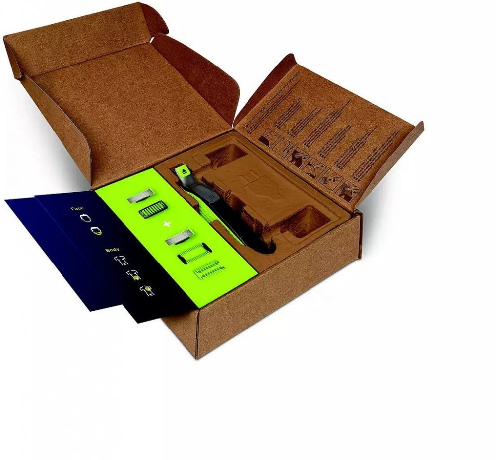 Philips OneBlade Tvář + Tělo zastřihne, vytvaruje a oholí vousy všech délek. K dispozici máte břit pro obličej, břit s ochranným nástavcem na tělo a hřeben na tělo. Přestaňte používat více nástrojů. OneBlade zvládne vše.