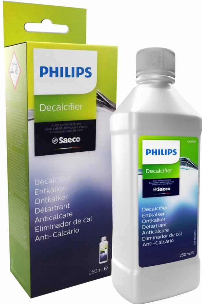 Odvápňovač Saeco  na jedno použití pro všechny typy kávovarů, přednostně pro Saeco. Odstraňuje vodní kámen z vodního okruhu kávovaru včetně bojleru. Nezpůsobuje korozi a nezanechává zbytky a pachy.