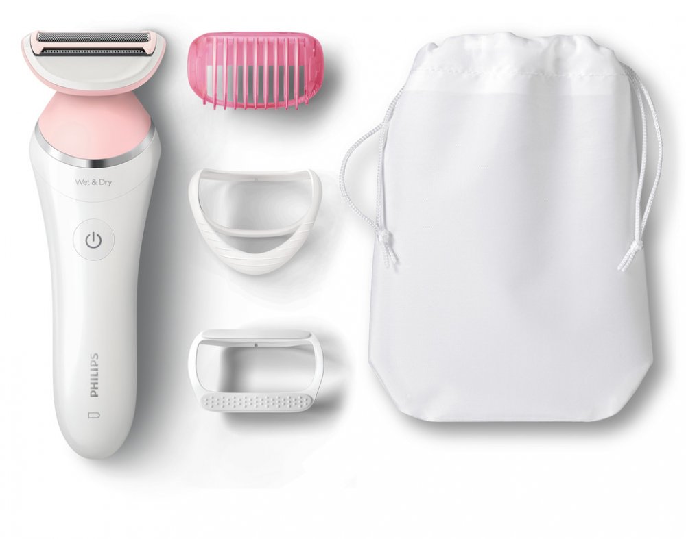 - Dámský elektrický holicí strojek pro mokré a suché holení, s jednoduchou planžetou, doba nabíjení: 8 hodin, 4 kusy příslušenství.