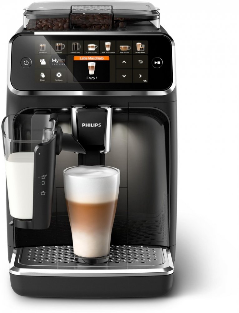 Philips černá Dotykové s integrovanou nádobou na mléko 15 bar 1.8 l 1 m 275 g 260 ml 145 mm 1 barevný TFT displej pro běžné šálky s nádržkou na vodu 1500 W keramické 12 8 kg 37.2 cm 24.6 cm 43.3 cm se snadnou údržbou 4 pro 3-4 osoby kompaktní 12 testováno na rostlinné mléko