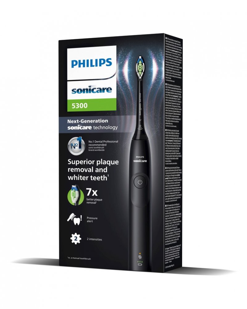 Kartáček Philips Sonicare 5300 jde nad rámec hloubkového čištění a bez námahy odstraňuje povrchové skvrny pro zářivý a bělejší úsměv. S hlavicí kartáčku W2 Optimal White je snadné udržet zuby zářivé mezi profesionálním bělením a zároveň odstranit až 7x více plaku než s ručním zubním kartáčkem.