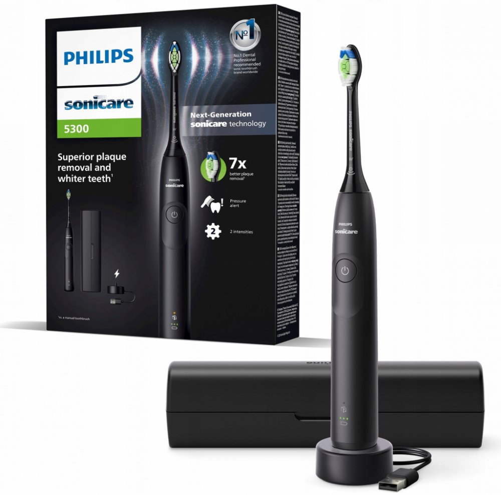 PHILIPS SONICARE Sonický zubní kartáček 5300 HX7101/02 černý Philips Sonicare 5300 HX7101/02 Sonický zubní kartáček. Díky technologii Sonicare nové generace zlikviduje zubní plak i z těch nejhůře dostupných míst – vykoná až 62 000 pohybů za minutu.