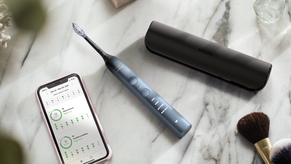 S pomocí aplikace Philips Sonicare, dostupné pro iOS i Android, vám sonický zubní kartáček Philips Sonicare DiamondClean 9000 nové generace poradí, jak si zlepšit či udržet zdravé návyky čištění zubů. Po připojení k mobilní aplikaci Sonicare vám budou k dispozici zprávy o průběhu čištění.