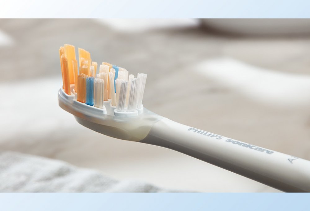 Čistěte si zuby bez kompromisů s hlavicí kartáčku A3 Philips Sonicare Prestige. Naše historicky nejlepší hlavice má šikmo střižená vlákna, která pomáhají odstranit až 20x více plaku i na těžko přístupných místech*. Vlákna s konečky střiženými do tvaru trojúhelníku slouží k odstranění až o 100 % více skvrn za méně než dva dny***. A delší vlákna čistí důkladně dásně, které jsou až 15x zdravější za pouhé dva týdny**. To vše bez výměny kartáčkové hlavice. Věděli jste, že kartáčkové hlavice jsou po 3 měsících používání méně účinné? Funkce BrushSync™ vám může připomenout, že je téměř čas na jejich výměnu.