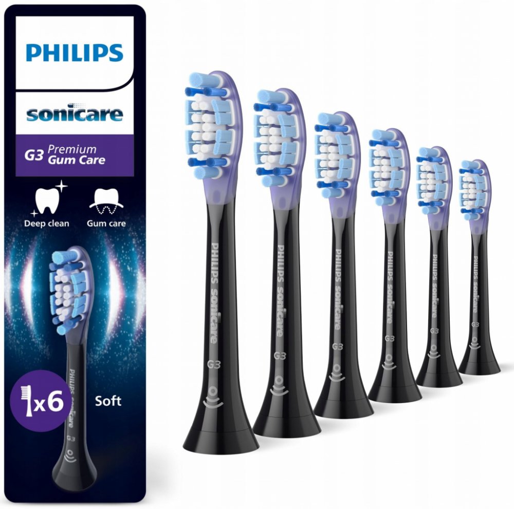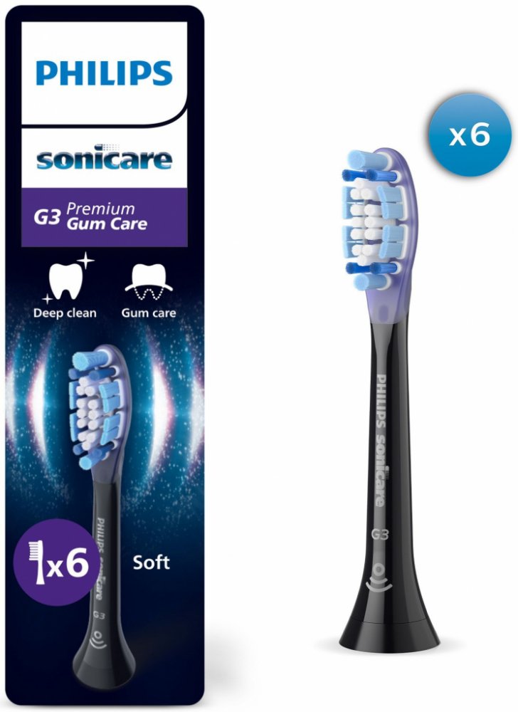 Hlavice Philips Sonicare Premium Gum CareStandardní velikost hlavice má design zaměřený na péči o dásně a umožňuje efektivní odstraňování plaku a bakterií podél linie dásní a ve špatně dostupných místech.Až 7× zdravější dásně během pouhých 2 týdnů.Až 2× větší kontakt s povrchem zubů a dásní pro hloubkové čištění bez námahy.Pro optimální výsledky měňte hlavice každé 3 měsíce.Hlavice jsou kompatibilní se všemi modely kartáčku Philips Sonicare 3. generace.Černá barvaBalení obsahuje 6 ks