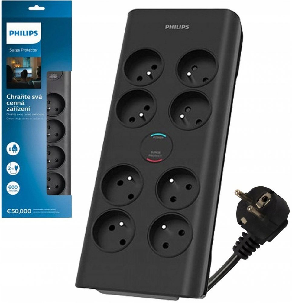 Přepěťová ochrana Philips SPN7080BA/60 je navržena pro maximální bezpečnost a ochranu elektroniky před elektrickými rázy. Disponuje osmi uzemněnými francouzskými zásuvkami, které umožňují připojení více zařízení k jedné zásuvce střídavého proudu. Díky 2metrovému opletenému napájecímu kabelu poskytuje flexibilitu při umístění zařízení. Tato přepěťová ochrana automaticky odpojuje napájení při přepětí, čímž chrání připojená zařízení před poškozením způsobeným bleskem, výkyvy napětí nebo poruchami elektrických zdrojů. Bezpečnost je zajištěna také funkcí, která brání vkládání malých předmětů nebo prstů dětí do zásuvek. LED kontrolky jasně signalizují stav zařízení, takže máte vždy přehled o jeho správné funkci. Philips SPN7080BA/60 nabízí spolehlivý výkon a robustní konstrukci, která zajistí dlouhou životnost. Je ideální pro domácí i kancelářské prostředí, kde chrání důležité elektronické vybavení, jako jsou počítače, televize nebo herní konzole. Kromě ochrany zařízení poskytuje tento model jednoduchou a efektivní správu napájení díky přehlednému rozmístění zásuvek. Investice do přepěťové ochrany Philips SPN7080BA/60 je krokem k zabezpečení vašich cenných zařízení před nečekanými událostmi, které mohou způsobit nenapravitelné škody. Objednávejte pod kat. číslem Phil-SPN7080BA/60