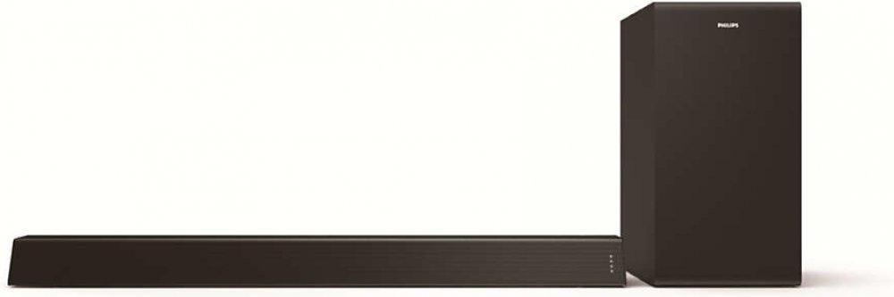 Buďte v centru dění. Tento výkonný, 300W soundbar s bezdrátovým subwooferem a zvukem Dolby vám poskytuje plný, bohatý zvuk a zřetelné dialogy.