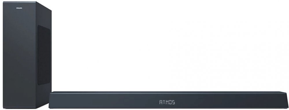 Philips TAB8405/37. Kanály audio výstupu: 2.1 kan., Výstupní výkon (RMS): 200 W, Vestavěné dekodéry zvuku: Dolby MAT, Dolby Atmos, Dolby Digital, Dolby Digital Plus, Dolby TrueHD. Výkon reproduktorového panelu RMS: 200 W, Impedance: 8 Ω, Koeficient harmonického obsahu: 10%. Typ basového reproduktoru: Aktivní subwoofer, Konektivita s subwooferem: Bezdrátový, Přenosové pásmo subwooferu: 40 - 160 Hz....