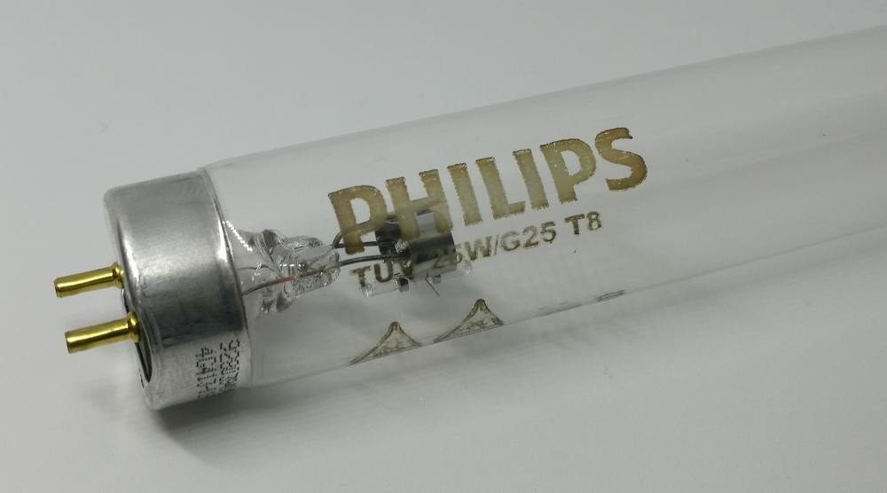 Germicidní trubice 25 W s paticí G13 provedení T8, zářivka produkuje ultrafialové krátkovlnné UVC záření, se špičkou 250 nm. Teto zdroj produkuje velmi malé % ozónu. Ultrafialové záření, je elektromagnetické vlnění s vlnovou délkou kratší než je okem viditelné světlo a je zdraví nebezpečné a při kontaktu s lidským okem, způsobuje silné podřáždění až zánět spojivek.