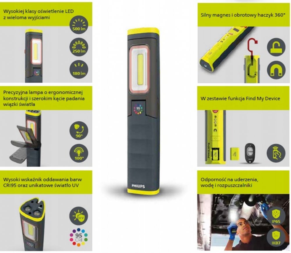 Tato vysoce kvalitní pracovní lampa je vybavena dodatečným UV světlem, které usnadňuje vnímání úniků. Nasměrujte UV světlo na libovolnou oblast, abyste identifikovali místa, která vyžadují opravu. Lampa Philips Xperion 6000 UV Pillar uspokojí všechny vaše potřeby v oblasti osvětlení.
