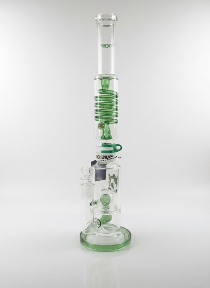 Phoenix Star Glycerin Bong se dvěma perkolátory a glycerinovou spirálou je vyroben z borosilikátového skla a měří 47 cm Jeho spodní část je odnímatelná, takže ji lze pohodlně vyměnit a vyčistit. Perkolátory pomáhají filtrovat váš kouř pro lepší chuť. Vysoce kvalitní glycerin se při zmrazení nerozpíná. Než začnete kouřit, můžete mrazitelný glycerinový bong umístit na 1-2 hodiny mrazáku nebo na delš...