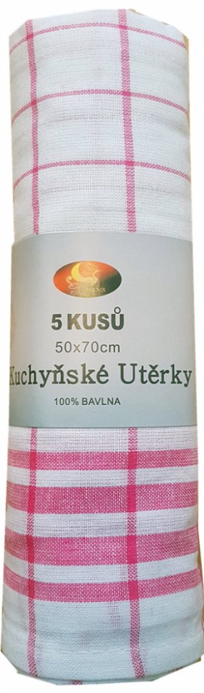 Nabízíme Vám utěrky o rozměrech 50 x 70 cm vyrobené ze 100% bavlny. Dodáváme je v balení po 5 ks, ve károvaném vzoru kostky v modré, zelené, černé, nachové a červené barvě. Naše bavlněné utěrky najdou své uplatnění jak ve Vaší domácnosti, tak v kuchyni Vašeho penzionu, restaurace či jinde.