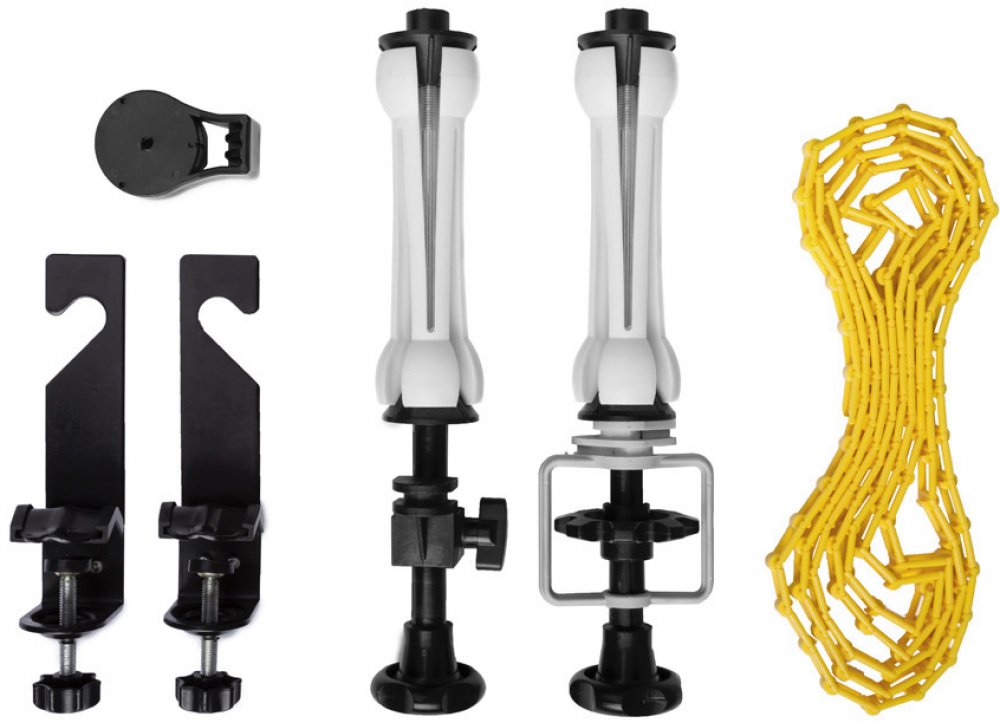 Tento držák slouží pro uchycení jednoho foto-pozadí na jakýkoliv studiový stativ nebo c-stand. Držák je dodáván včetně trnů, řetízkem pro odvíjení a zajištění pozadí a závaží. Díky držáku tak můžete mít snadno složitelnou a mobilní konstrukci pro pozadí. Držák je ideální volbou i v kombinaci s konstrukcemi pro uchycení jednoho pozadí kde získáte možnost použití dvou pozadí na jedněch stativech.