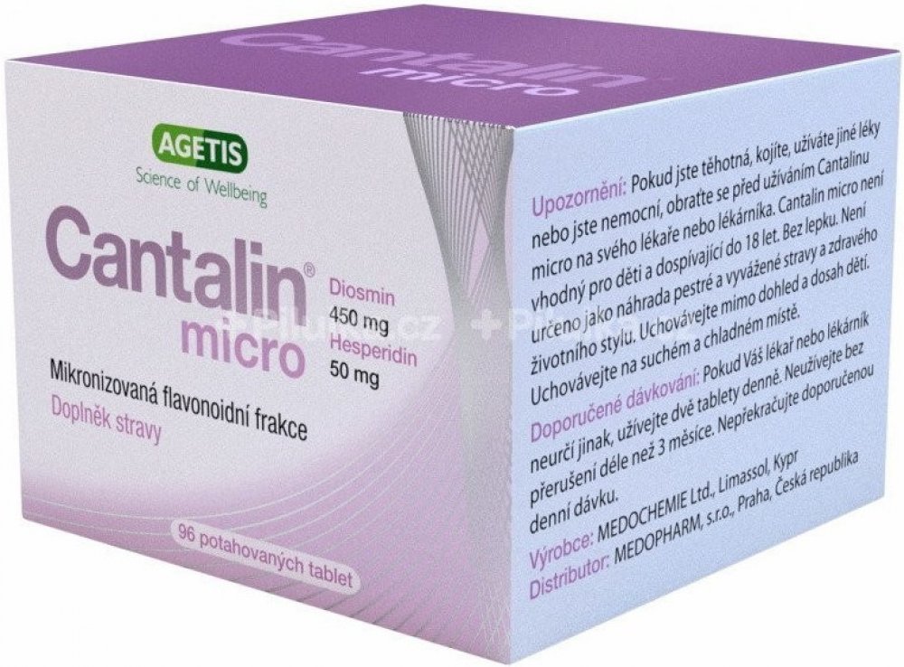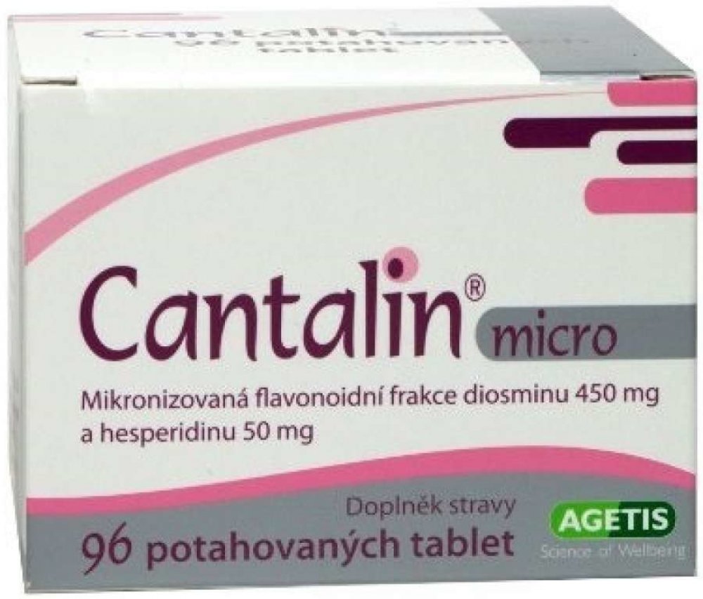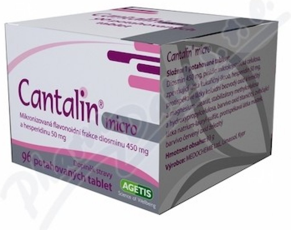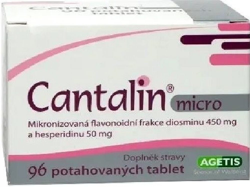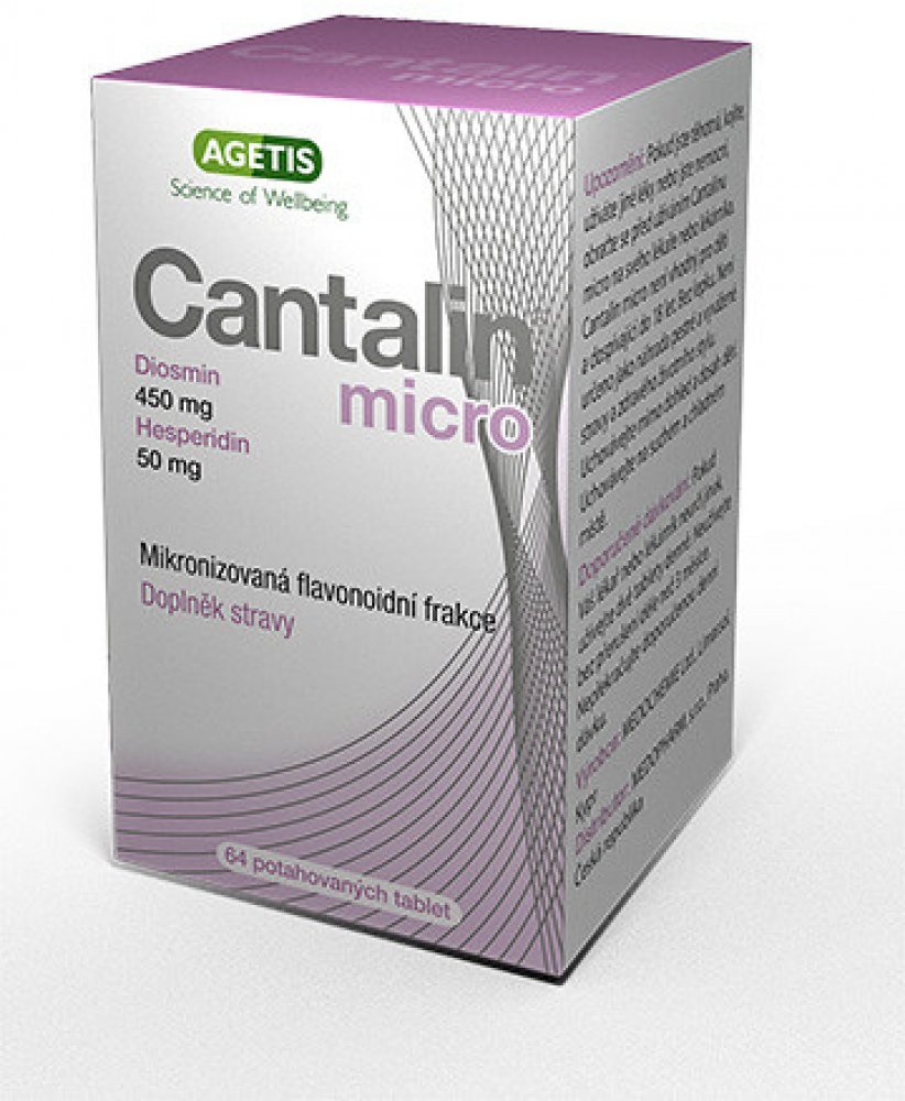 Cantalin micro je doplněk stravy obsahující mikronizovanou bioflavonoidní frakci diosminu 450 mg a hesperidinu 50 mg. Mikronizace umožňuje rychlejší a účinnější absorpci důležitých látek.