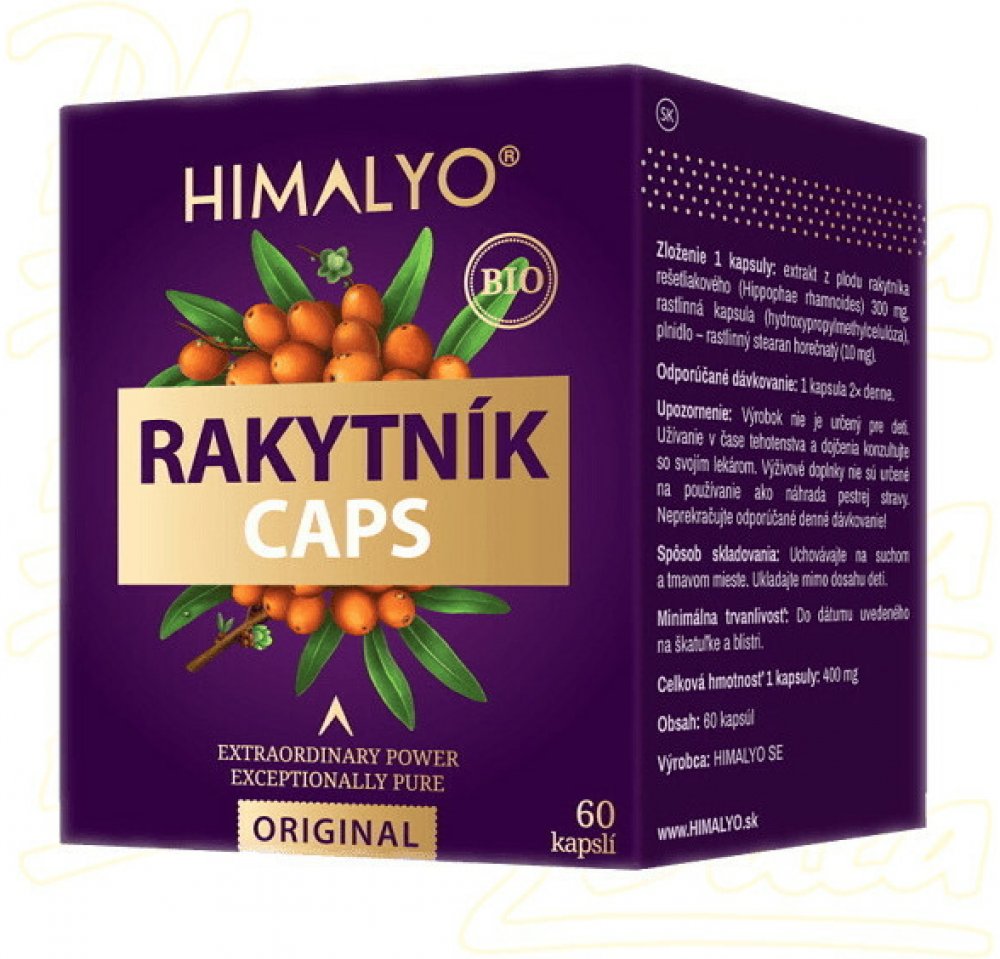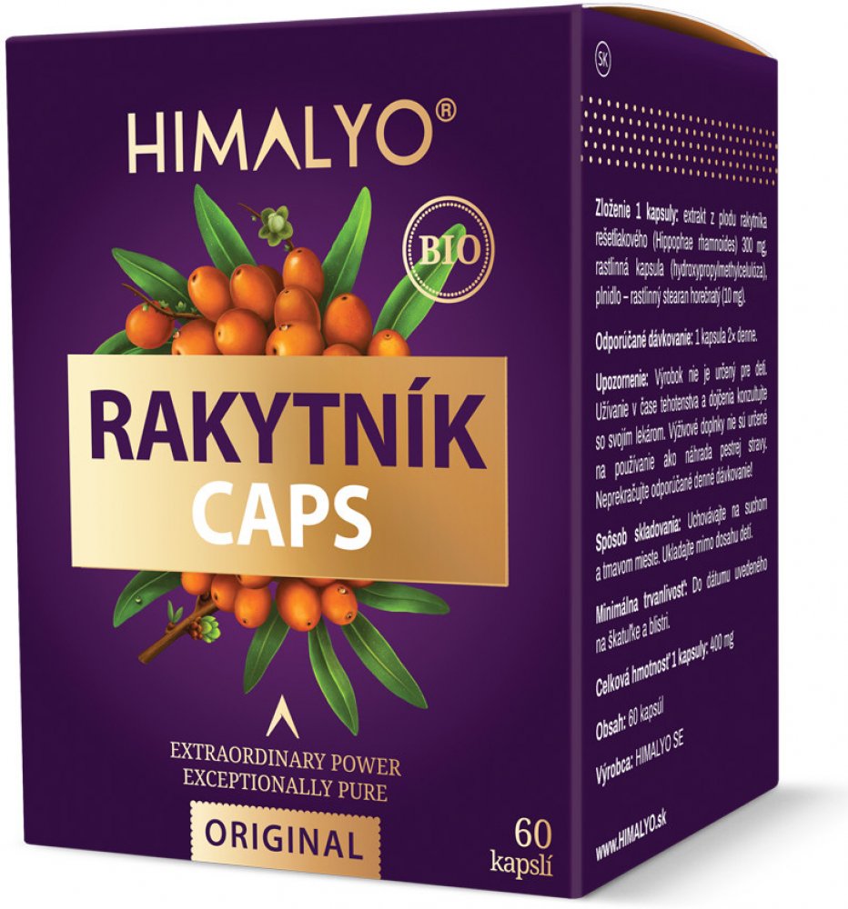 Složení: BIO extrakt z rakytníku tibetského 300mg, rostlinná kapsle, plnivo – rostlinný stearan hořečnatý (10 mg)