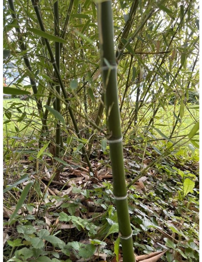- Vysoký a odolný bambus se silnou tyčovinou a drobnými listy. Stébla mohou dosahovat až 10 cm tloušťky. Pod kolénkem mají šedý proužek. Na slunečném stanovišti stébla blednou až do žlutošedé. Výhony jsou jedlé.