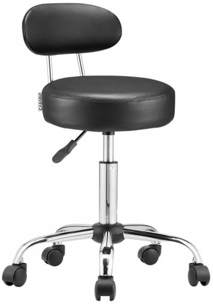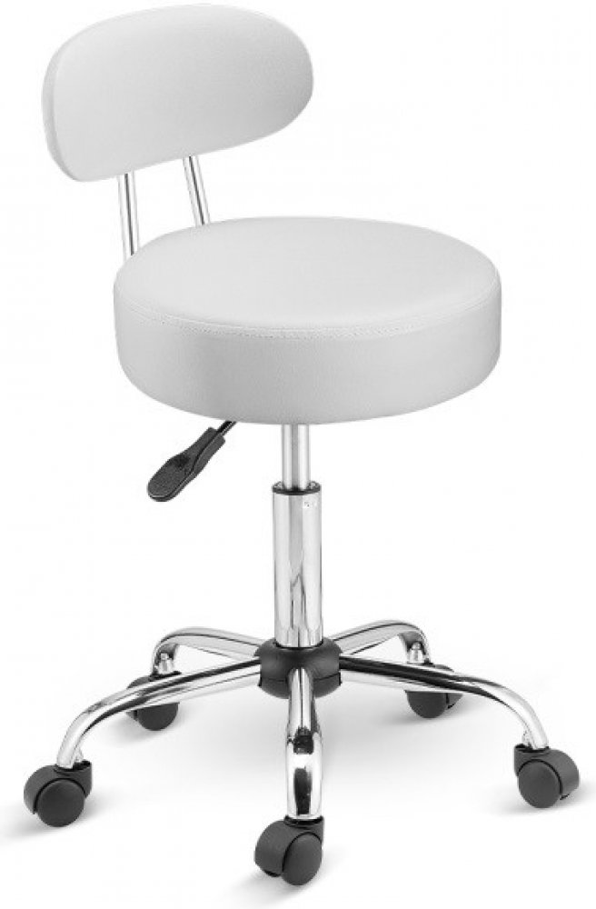 Otočná židle s opěradlem nabízí komfort sezení a velkou flexibilitu. Je plynule výškově nastavitelná a volně otočná o 360°. Má také pochromovanou ocelovou základnu s 5 kolečky pro optimální stabilitu. Podsedák o tloušťce 10 cm a plynová pružina zajišťují optimální komfort sezení. Potah sedačky je vyroben ze syntetické kůže, která se snadno udržuje a je odolná. Díky tomu lze hladký povrch rychle a jednoduše vyčistit.