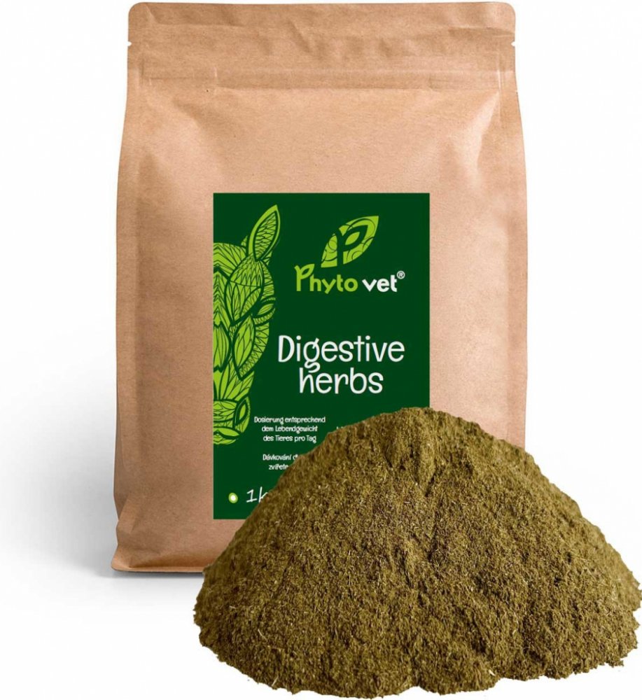 Digestive herbs pro koně je jemně mletá směs deseti druhů léčivých rostlin. Harmonizuje trávicí trakt zvířat. Má protizánětlivé účinky, působí i jako detoxikant. Ochraňuje sliznice střev a žaludku, napomáhá lepšímu zužitkování výživných látek krmiva při trávení, zlepšuje příjem potravy při nechutenství. Vhodné je přikrmování při snížené chuti k příjmu potravy např. v průběhu různých onemocnění, př...