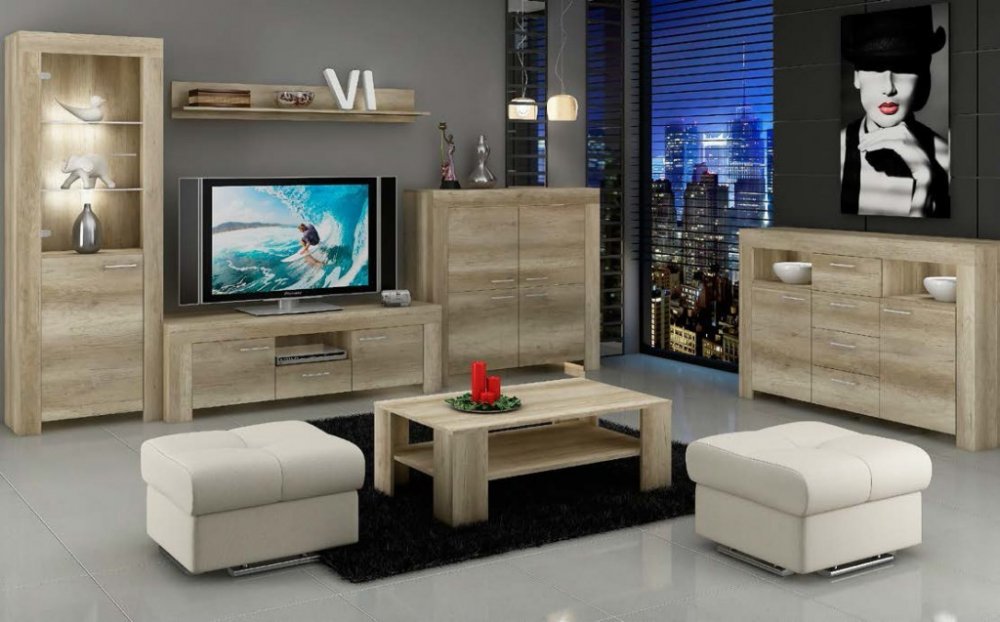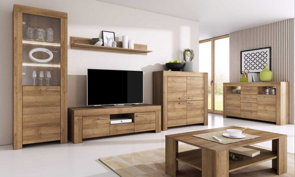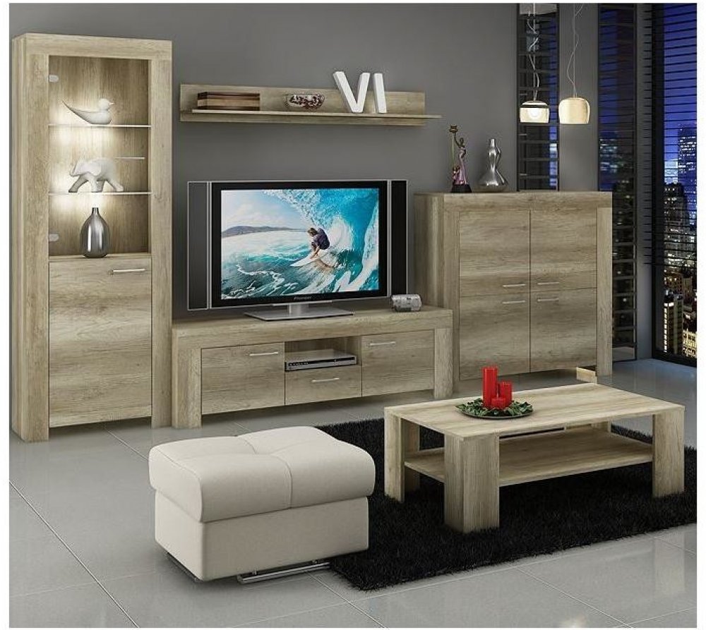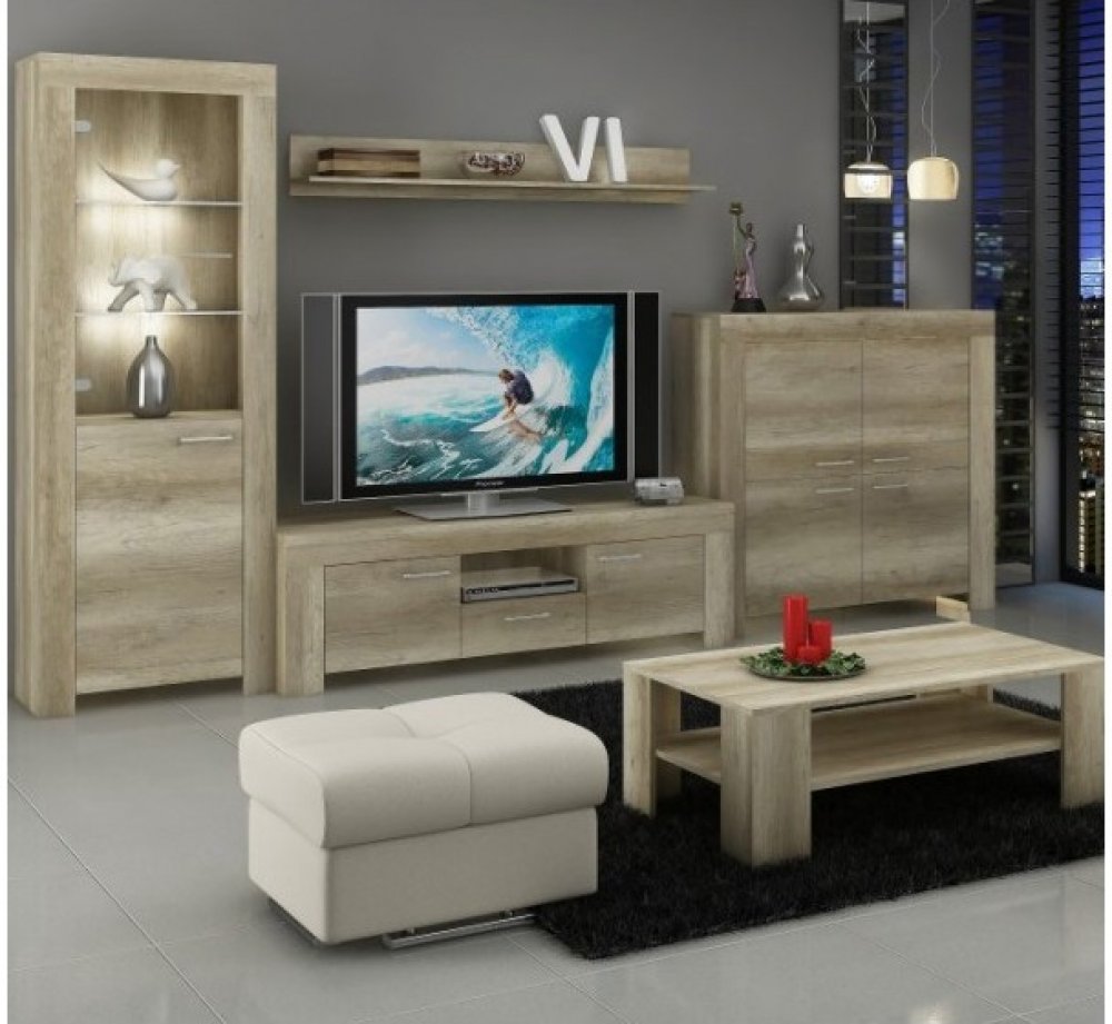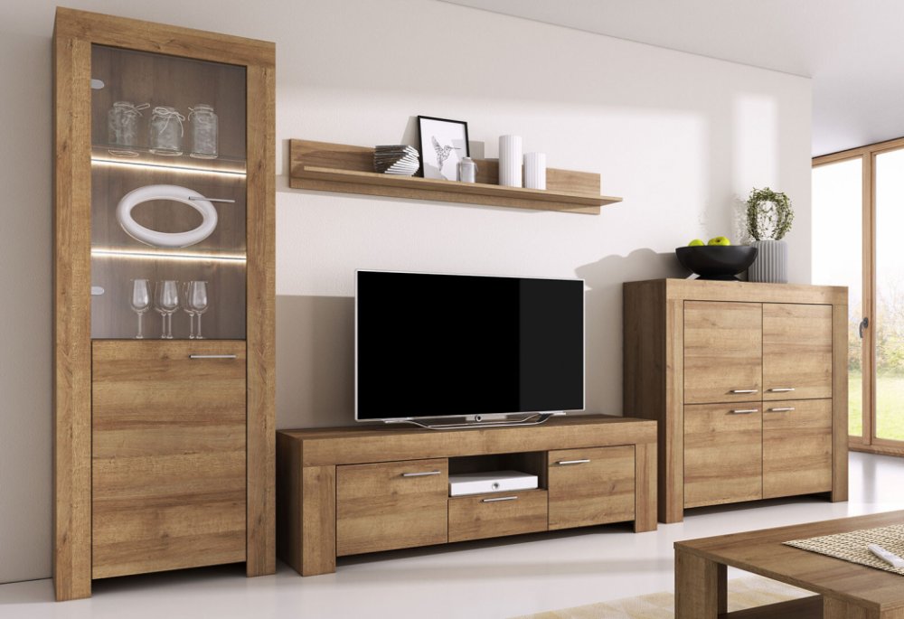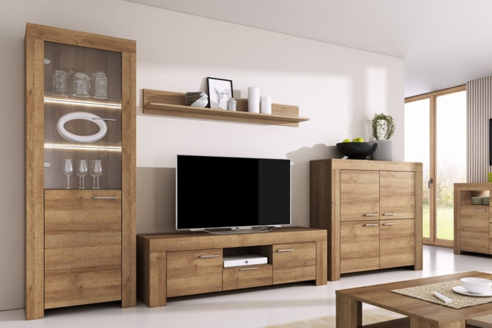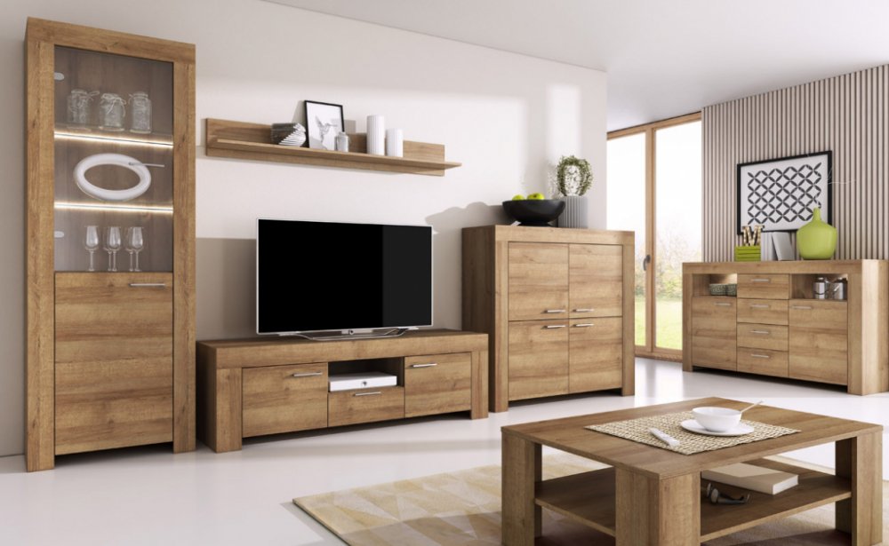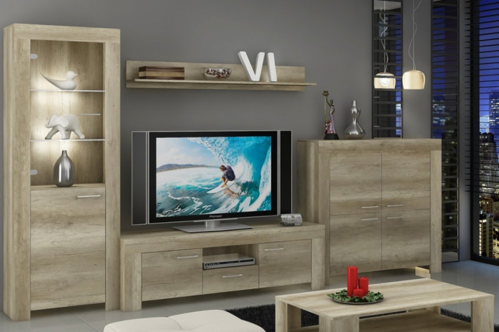 Skládá se z TV stolku, vitríny, komody a závsné police.
