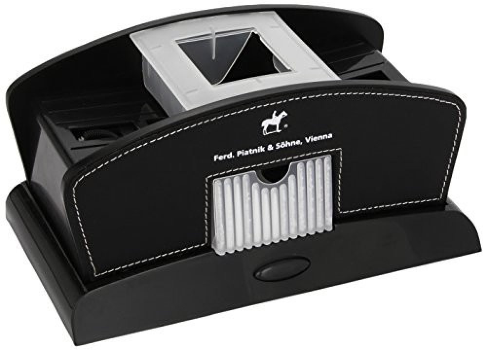 Automatická míchačka karet udělá vše za Vás. Míchačka je elektrická a během chvilky dokáže dokonale zamíchat karty. Pojme až dva balíčky karet. Karty nejsou míchány pravidelně ale náhodně.
