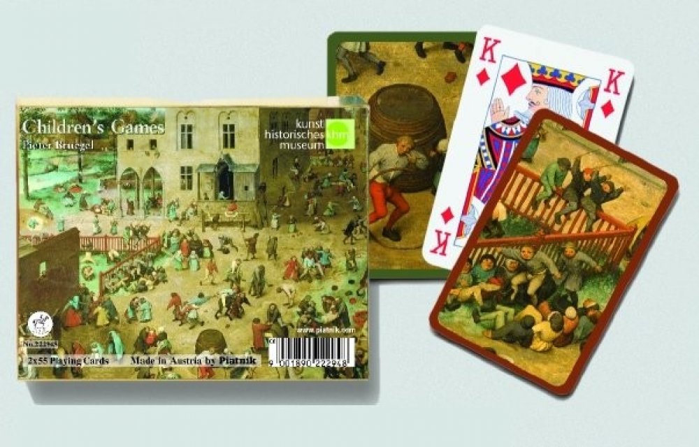 Kvalitní kanastové karty s motivem ilustrace známého malíře Bruegela. Vhodné pro kanastu, žolíky, bridž a další spoustu karetních her. 2x 55 listů