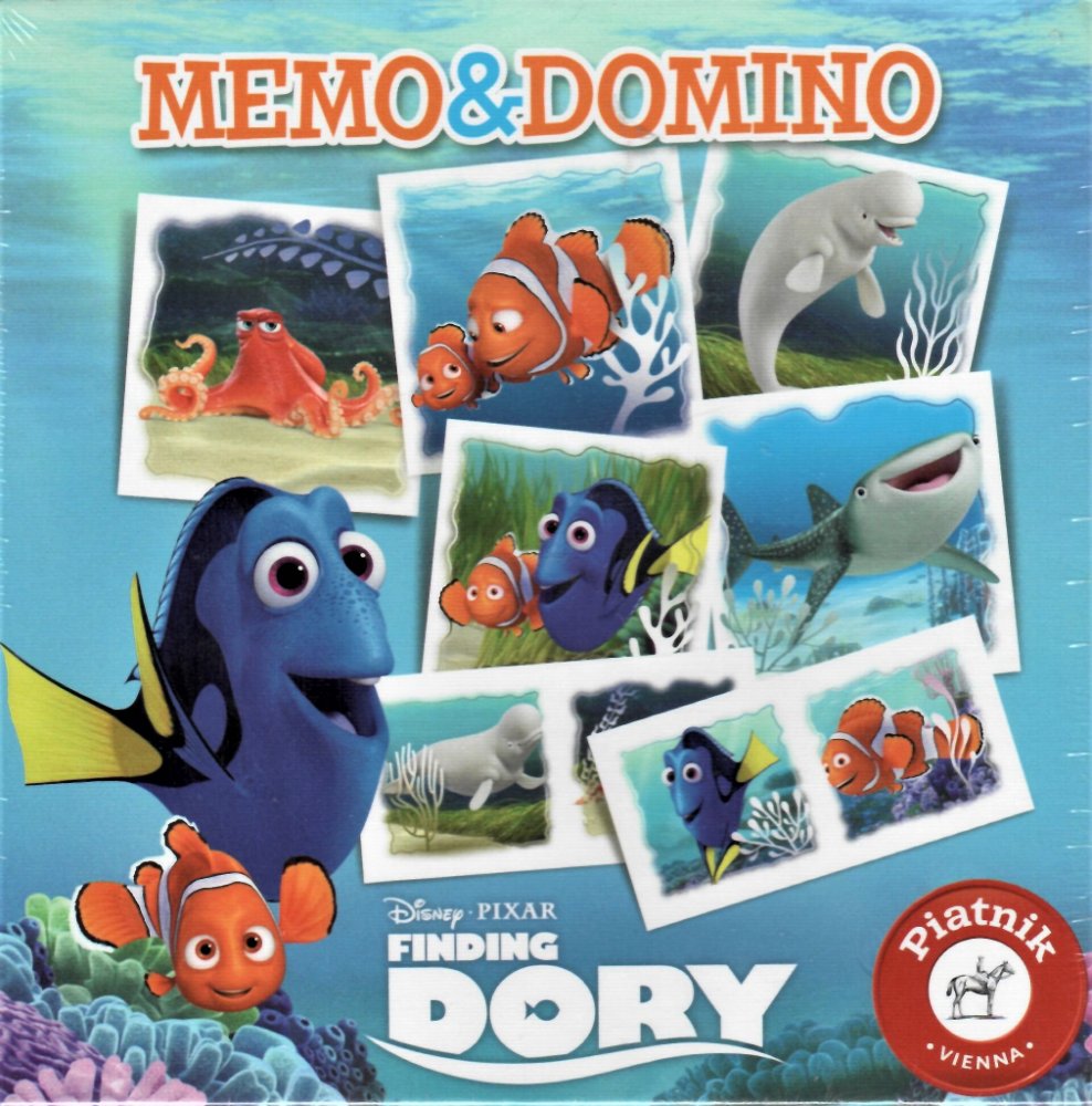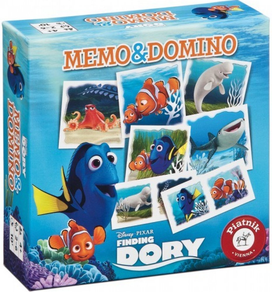 Pexeso a Domino - Hledá se Dory Dvě zábavné hry v jednom balení. Zahraj si podle toho, na co máš právě teď náladu!Vydej se s pexesem a dominem na dobrodružnou cestu s Dory!Pexeso stimulujte zábavnou formou paměť a pozorovací schopnosti.45 dílků domina tě vtáhne na 90 obrázcích do dobrodružného podmořského světa s Dory.Klasická hra pro všechny věkové kategorie, při které hráči hledají stejné dvojic...