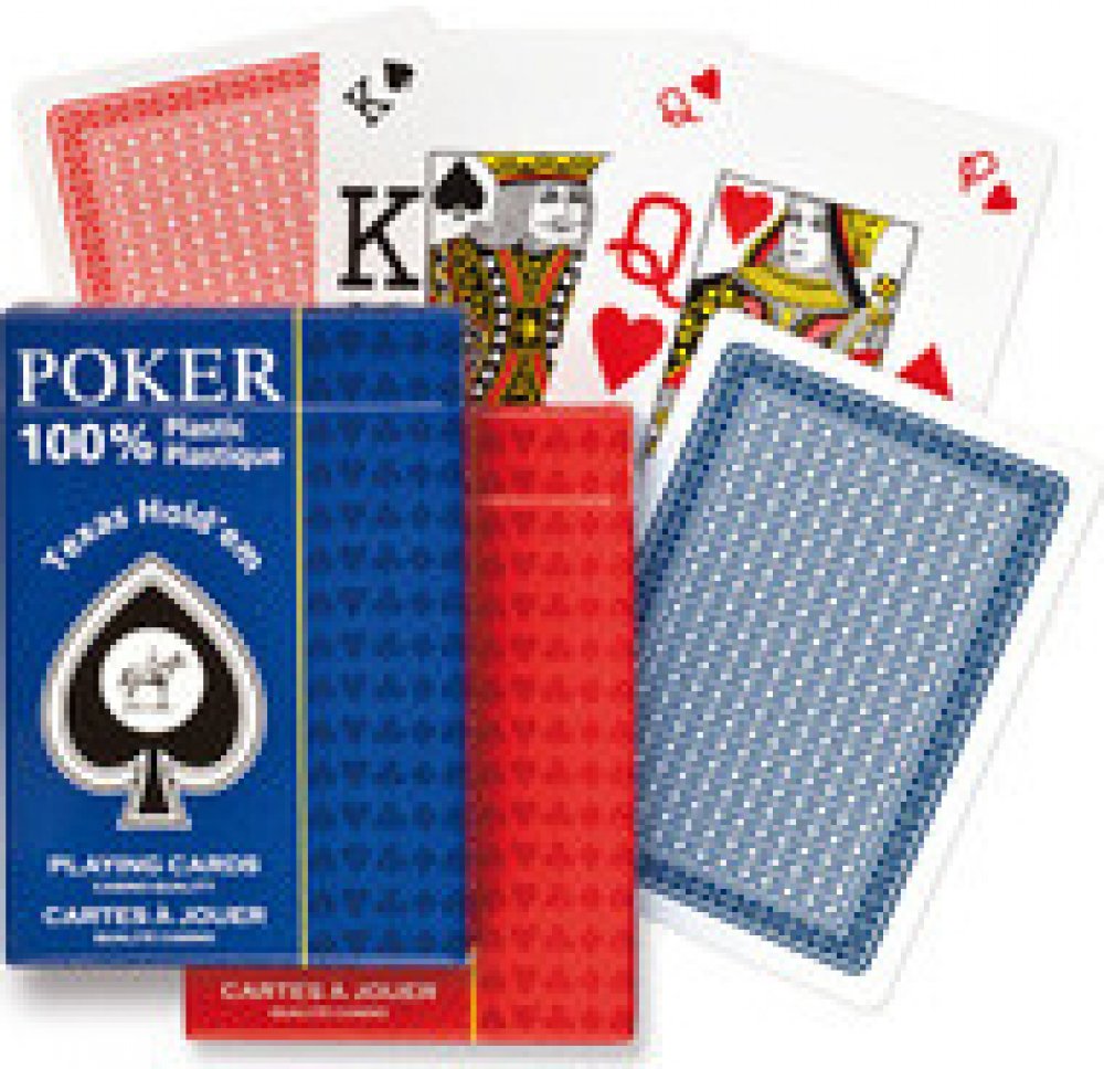 Pořiďte si hezké pokerové karty od Piatnik ve variantě Jumbo Index Speciál ze 100% plastu pro náročnější hráče, můžete je sebou vzít i na výlet a k vodě. Jedná se o pokerové karty francouzského typu s velkými číslicemi a písmeny.Sada obsahuje jeden balíček, ve kterém je 55 listů.Poker je dnes již tradiční oblíbená karetní hra, která se v nejrůznějších variantách hraje po celém světě. Základem hry je karetní balíček s 52 kartami ve čtyřech barvách. Pro aktivnější hráče zde na webu máme i jiný Pokerový sortiment.