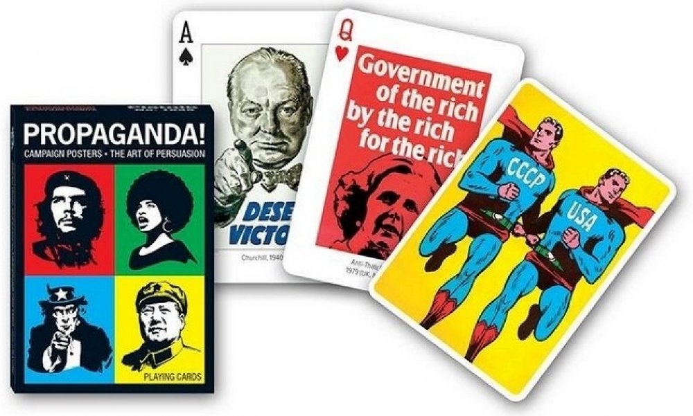 Publikace: Piatnik Poker - Propagnda - neuveden. Pokerové propagandistické hrací karty Piatnik , balíček karet s plakáty kampaně zobrazujícími umění přesvědčování. Poker je hra, která stejně jako šachy, nabízí velkou herní rozmanitost podtrženou jednoduchými pravidly. Existují desítky různých variací pokeru, pravidla jsou až na drobné odchylky společná. Vždy se hraje s balíčkem 52 karet ve čtyřech barvách. Publikace: Piatnik Poker - Propagnda - neuveden.