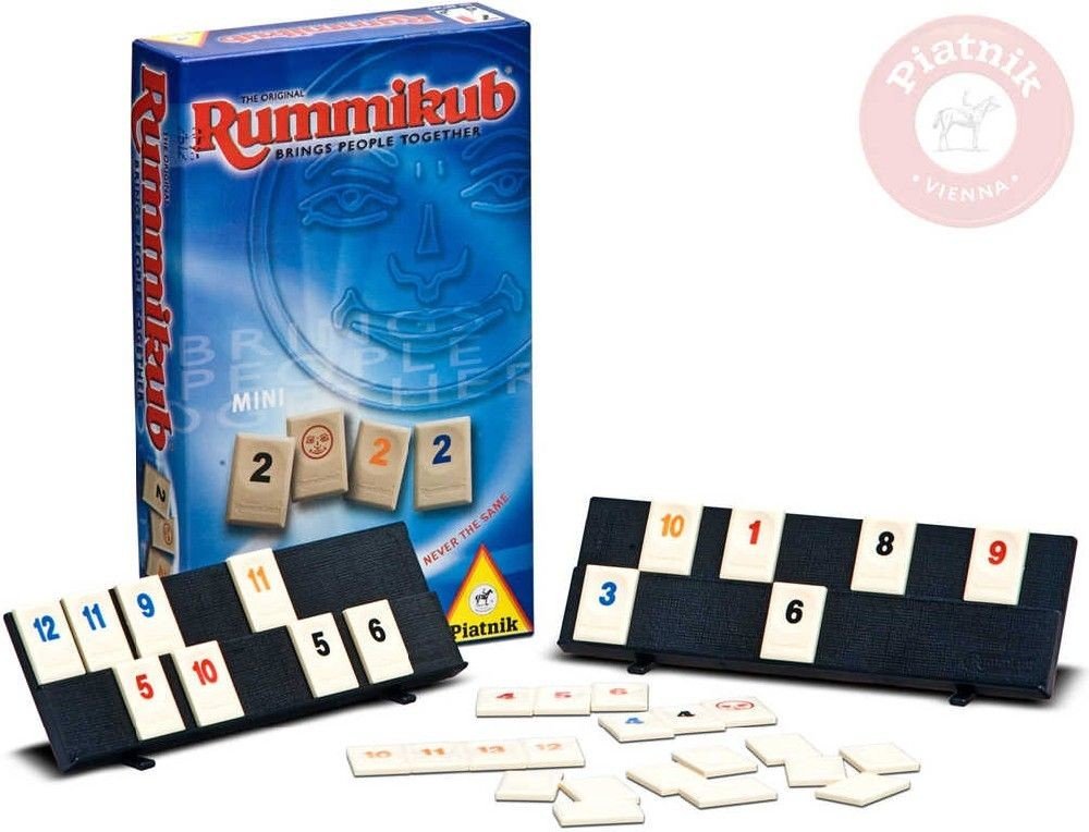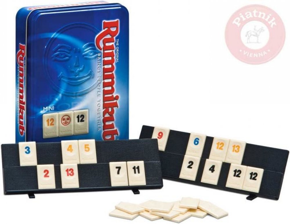 Rummikub je originální, celosvětově známá společenská hra s čísly, ve které se pravidelně jednou za dva roky pořádá mistrovství světa. Hra má jednoduchou přípravu a velmi kvalitní komponenty. Pravidla jsou snadno srozumitelná, tak že vám už nic nebrání uplatnit svůj důvtip a kombinační schopnosti.Cílem hry je zbavit se všech kamenů tvořením skupin či postupek z čísel. Hra Rummikub do značné míry připomíná klasickou karetní hru žolíky. Hráči mají v zásobnících umístěny číslice, z nichž vytváří řady, které vykládají na stůl. Řady mohou mít podobu postupek stejných barev či být kombinací stejných číslic, avšak různých barev. Ostatní hráči mohou vyložené řady libovolně využívat a měnit. Hráč, který vyloží všechny číslice, vyhrává a na svůj účet si připisuje tolik bodů, jaký součet číslic zbyl ostatním hráčům. Hra Rummikub obsahuje: 104 kameny (vždy dva kameny očíslované od 1 do 13 ve všech barvách - černá, oranžová, modrá a červená) 2 kameny - žolíky 4 plastové stojánky