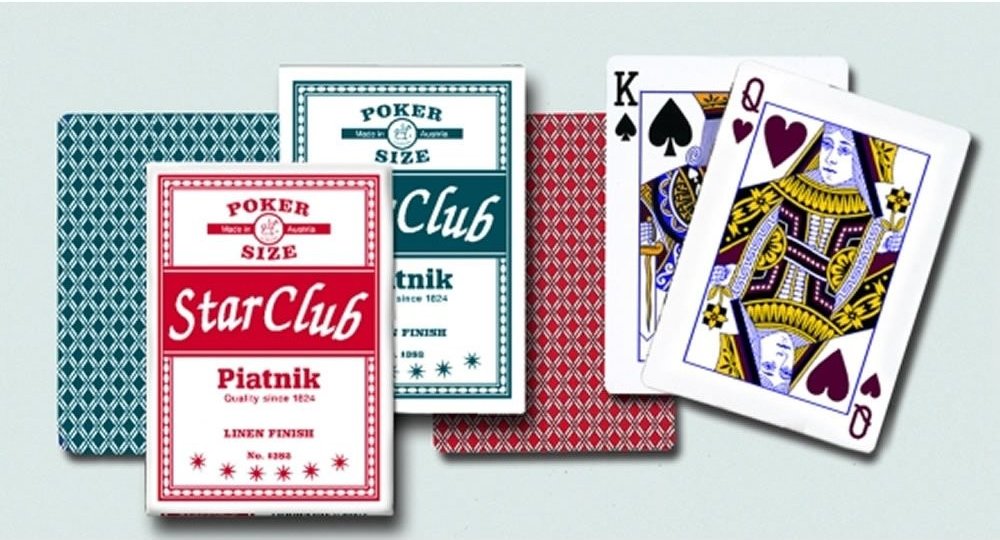 Publikace: Piatnik Poker - Star Club - neuveden. Poker je hra, která stejně jako šachy, nabízí velkou herní rozmanitost podtrženou jednoduchými pravidly. Existují desítky různých variací pokeru, pravidla jsou až na drobné odchylky společná. Vždy se hraje s balíčkem 52 karet ve čtyřech barvách. Partie po Publikace: Piatnik Poker - Star Club - neuveden.