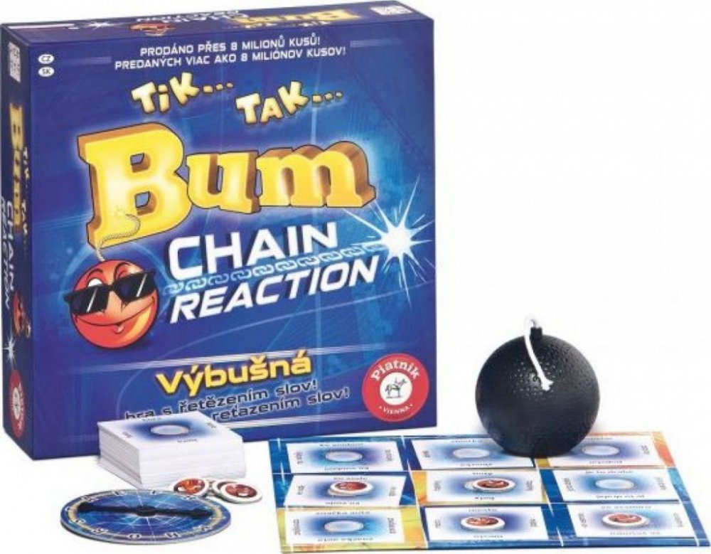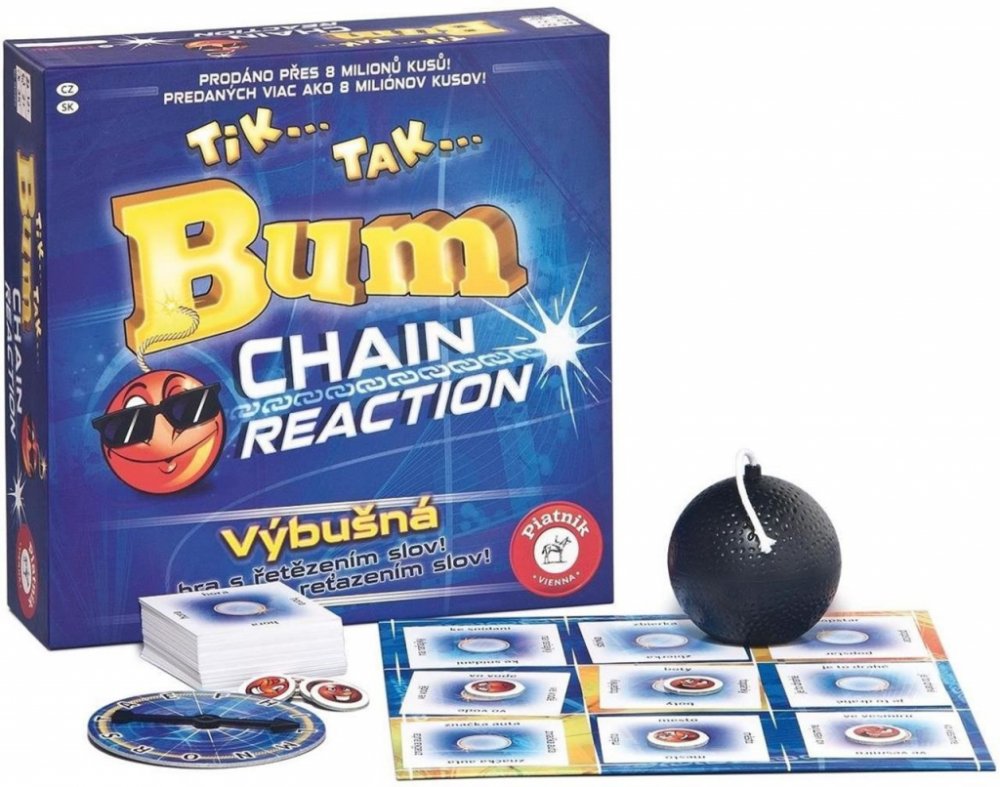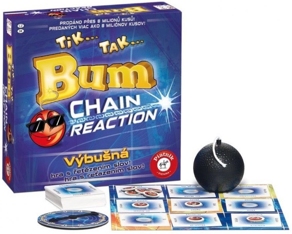 Tik, tak, čas neúprosně běží a bomba nepřestává tikat, zvládnete vymyslet správné slovo dřív, než bomba vybuchne? Zábavná párty hra Tik Tak Bum Chain Reaction vám doslova vlije adrenalin do žil.