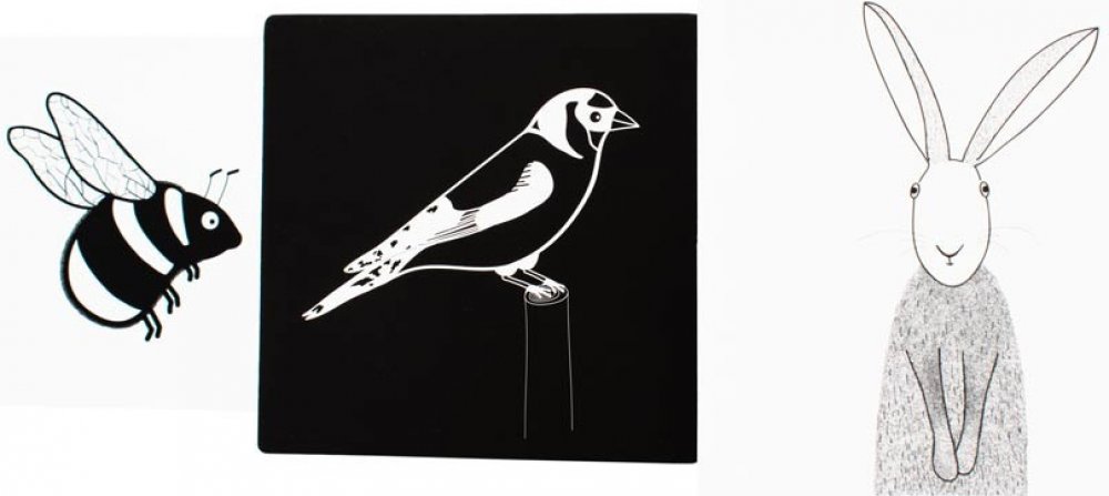 Jednoduchý design karet poskytuje vizuální stimulaci a rozvoj dětí již od narození. Výzkumy ukazují, že novorozenci lépe reagují na černobílé obrázky s vysokým kontrastem. Umístěte karty například na kraj postýlky, kočárku nebo je položte na zem či opřete o stěnu. Balení obsahuje karty s motivem zajíce, motýla, píďalky, stehlíka, šneka, kobylky, ještěrky, čmeláka, pampelišek, jetele, trávy, bodláku, stromu, šípků a třešní.