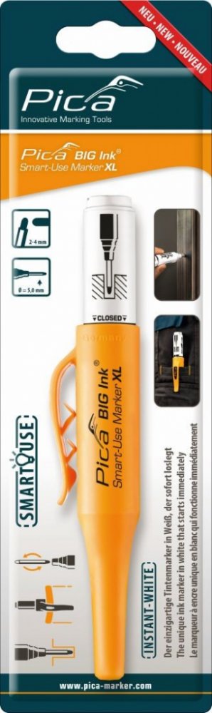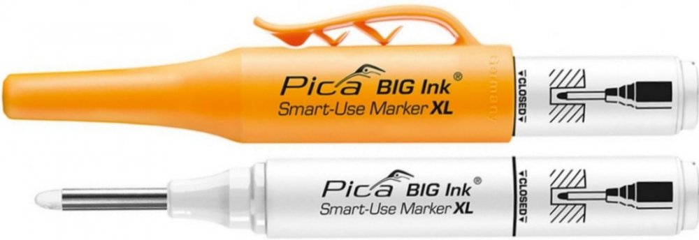 Dvoustranný řemeslnický voděodolný značkovač od německé firmy PICA. Odolný proti rozmazání už po 20 vteřinách. Víčko s háčkem slouží zároveň jako pouzdro, díky kterému můžete s popisovačem rychle a jednoduše manipulovat a popisovač nikdy neztratíte. Permanentní inkoust na vodní bázi. Díky unikátnímu dvojitému hrotu má značkovač BIG Ink prodlouženou životnost - stačí hrot jednoduše otočit.