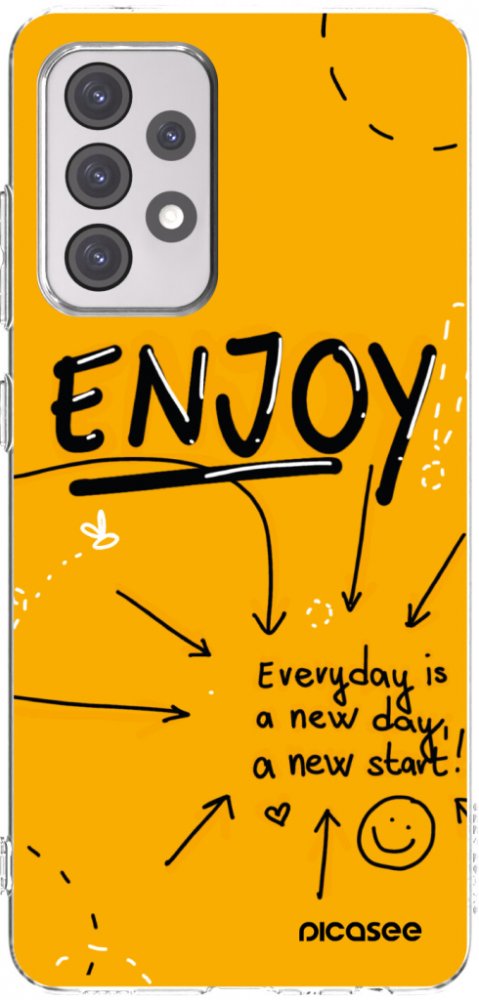 Picasee průhledný silikonový obal je vyroben z odolného, velice pevného a lesklého materiálu, na kterém je UV technologií natisknut design Picasee Enjoy.Picasee průhledný silikonový obal Materiál Díky transparentnímu provedení nechá vyniknout původní design telefonu.KvalitaPružný materiál zajišťuje dokonalou přilnavost.OchranaObal prošel crash testem a v kombinaci s Picasee ochranným sklem na displej vydrží pád až z 2,5m.Pouzdro na mobil Samsung Galaxy A52 5G A525F doporučujeme doplnit tvrzeným sklem pro lepší ochranu displeje.Typ ochranného prvku: ochranný obal určený pro zadní část telefonu Samsung Galaxy A52 5G A525FMateriál: silikonKompatibilní s: Samsung Galaxy A52 5G A525FObsah balení: 1x matný silikonový obal v černé barvě pro Samsung Galaxy A52 5G A525F s designem Enjoy v luxusní dřevěné krabičce Picasee