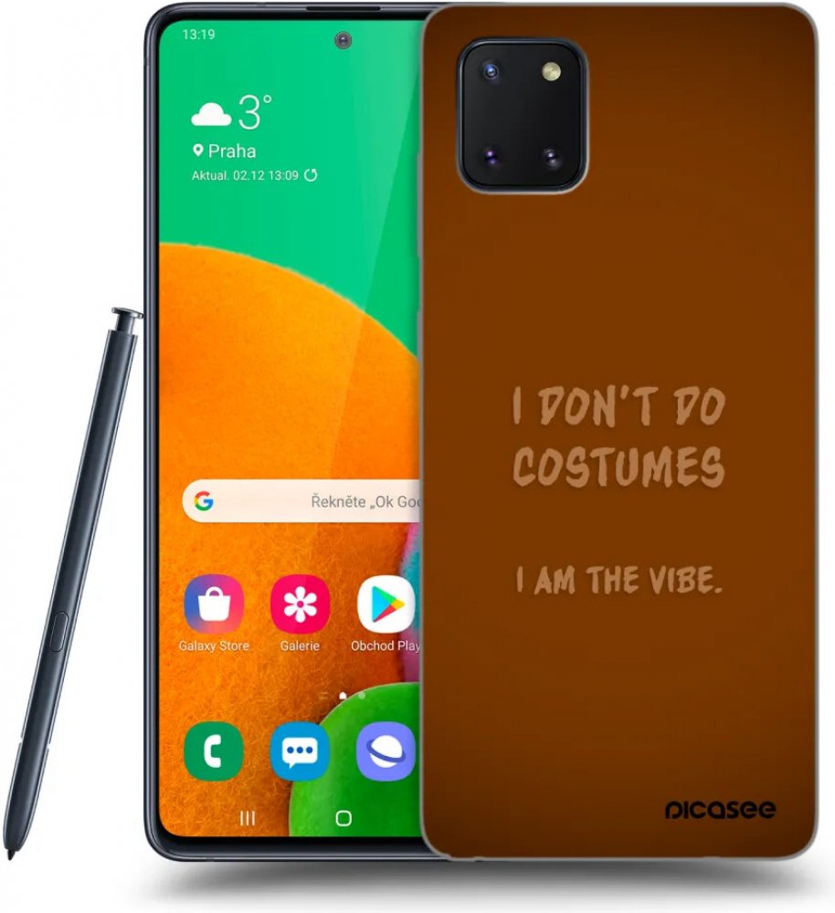 Picasee průhledný silikonový obal je vyroben z odolného, velice pevného a lesklého materiálu, na kterém je UV technologií natisknut design Picasee I don´t do costumes.Picasee průhledný silikonový obal Materiál Díky transparentnímu provedení nechá vyniknout původní design telefonu.KvalitaPružný materiál zajišťuje dokonalou přilnavost.OchranaObal prošel crash testem a v kombinaci s Picasee ochranným sklem na displej vydrží pád až z 2,5m.Pouzdro na mobil Samsung Galaxy Note 10 Lite N770F doporučujeme doplnit tvrzeným sklem pro lepší ochranu displeje.Typ ochranného prvku: ochranný obal určený pro zadní část telefonu Samsung Galaxy Note 10 Lite N770FMateriál: silikonKompatibilní s: Samsung Galaxy Note 10 Lite N770FObsah balení: 1x matný silikonový obal v černé barvě pro Samsung Galaxy Note 10 Lite N770F s designem I don´t do costumes v luxusní dřevěné krabičce Picasee