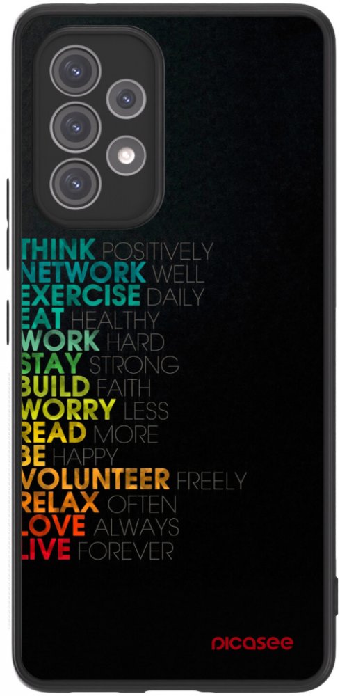 Picasee ULTIMATE CASE je vyroben z pevného silikonu a tvrzeného plexiskla, na kterém je UV technologií natisknut design Picasee Motto života. Díky použití kvalitních materiálů garantujeme doživotní záruku.Picasee ULTIMATE CASEKvalitaObal byl testován v extrémních podmínkách a v kombinaci s Picasee ochranným sklem na displej vydrží pád až z 5m. Maximální ochrana Díky zesílené vrstvě materiálu v oblasti zadního fotoaparátu je tato choulostivá část dokonale chráněna proti poškození.Luxusní vzhledTvrzené plexisklo dodá zadní straně lesklý skleněný vzhled, díky tomu vypadá kryt luxusně.Díky zabudované ochraně zadní kamery není kompatibilní s ochrannými čočkami fotoaparátu.Typ ochranného prvku: ochranný obal určený pro zadní část telefonu Samsung Galaxy A52 5G A525FMateriál: černý silikon, tvrzený plast a plexiskloKompatibilní s: Samsung Galaxy A52 5G A525FObsah balení: 1x Picasee ULTIMATE CASE pro Samsung Galaxy A52 5G A525F s designem Motto života v luxusní dřevěné krabičce Picasee