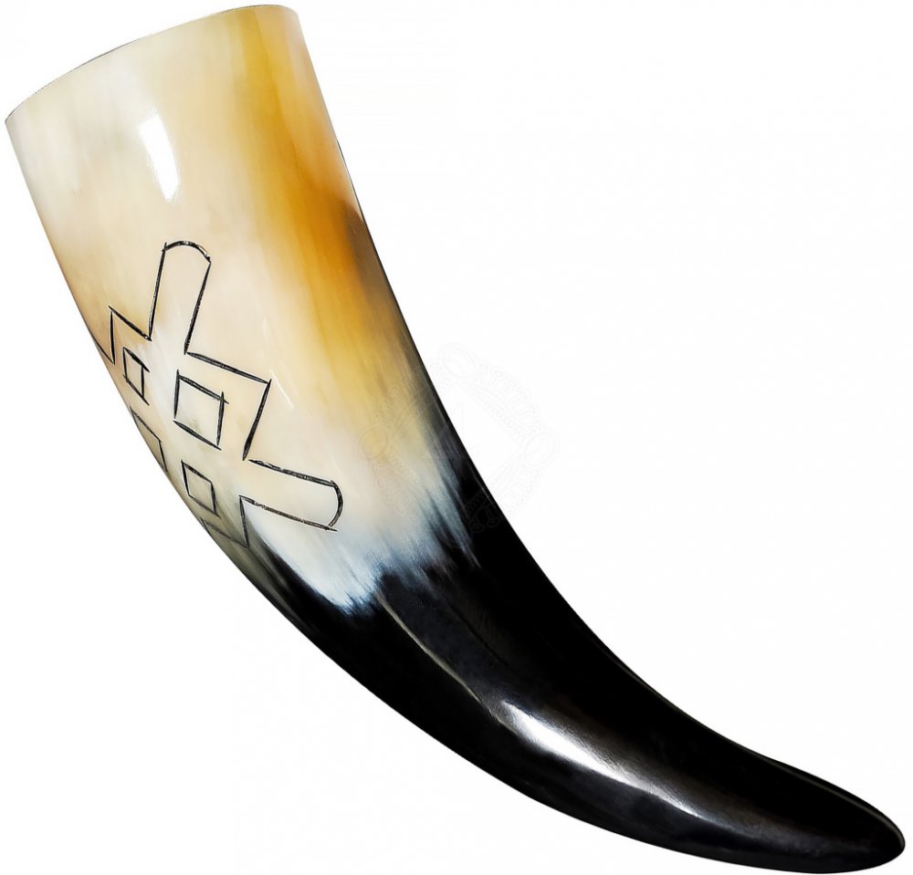 Tento picí roh zaujme svým dokonale vyleštěným povrchem a přirozeným barevným přechodem – od světlých, téměř smetanových tónů u hrdla až po sytě černou barvu na špici. Na jeho těle je vyryt mocný symbol Gungnir, oštěp hlavního severského boha Ódina. Podle mytologie tento oštěp, vyrobený skřítky, nikdy neminul svůj cíl a vždy se svému majiteli vrátil do ruky. Symbol představuje odhodlání, přesnost a sílu.