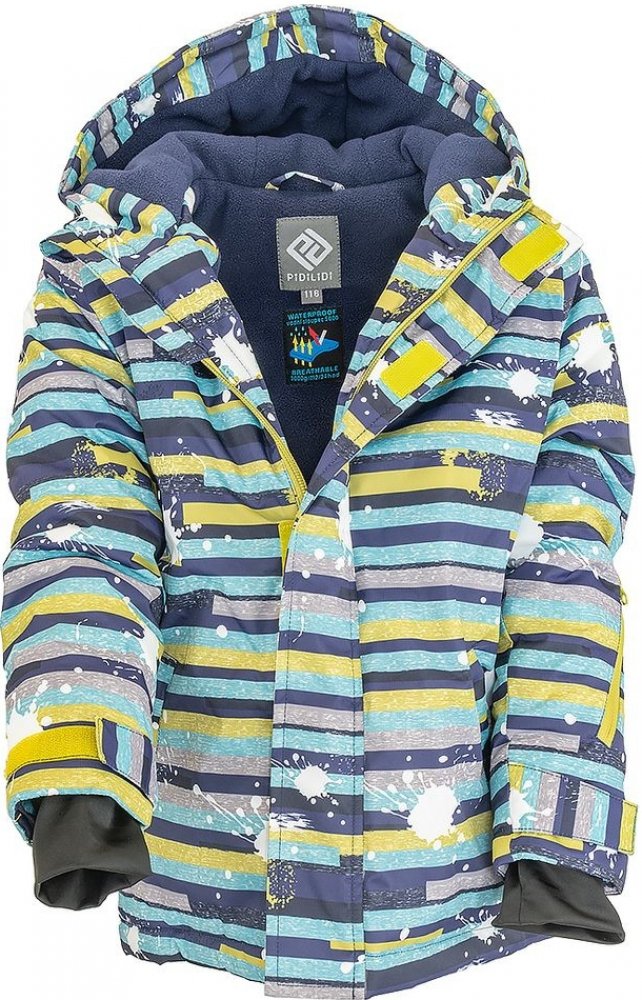 Chlapecká lyžařská bunda Pidilidi SKI JACKET v moderní barevné kombinaci. Bunda disponuje vnitřním lyžařským pásem a skipas kapsou na levém rukávu. Má hřejivou výplň, efektní hladkou flísovou podšívku (přední a zadní díl, kapuce), má pevnou kapuci, která je vybavena nesnímatelnou kožešinou. Na předním dílu se po celé délce zapíná na zip s chráničem brad, zip chrání léga na suchý zip. Bunda má dvě boční kapsy na zip. Rukávy jsou ukončené stahovacím páskem na suchý zip (lze regulovat dle potřeby), uvnitř rukávu se nachází elastický úplet s otvorem na palec. Bunda má prodloužený zadní díl. Reflexní potisk je na přední i zadní části.