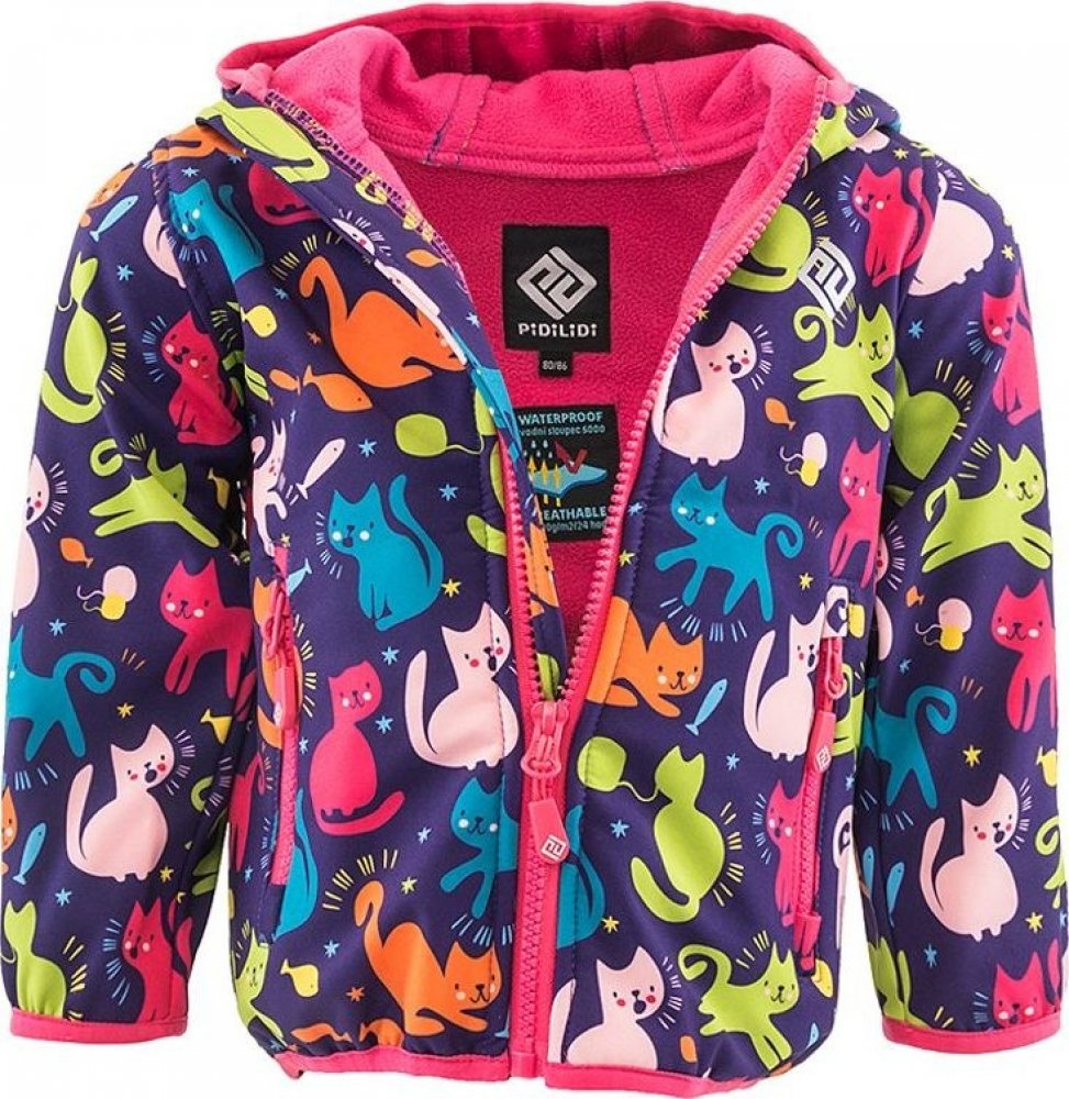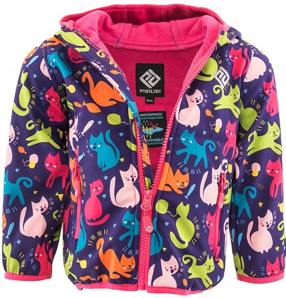 Pidilidi bunda softshellová dívčí s potiskem a pevnou kapucí PD1103-01 Holka