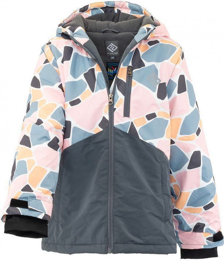 Dívčí bunda lyžařská zimní NANDA, Pidilidi. Dívčí bunda lyžařská zimní NANDA, Pidilidi.Vaše dítě si zimu zamiluje díky naší dětské lyžařské bundě v atraktivní barevné kombinaci. Tato bunda byla navržena s ohledem na maximální funkčnost a pohodlí. Je vybavena praktickým lyžařským pásem, který efektivně chrání před pronikáním sněhu, a je podšitá mikroflísem pro příjemné teplo a komfort.Bunda má dvě přední kapsy na zip pro bezpečné uložení drobností a praktickou kapsu na skipas na levém rukávu, což usnadňuje rychlý přístup při jízdě na svahu. Pevná kapuce poskytuje dodatečnou ochranu před nepříznivým počasím.Rukávy jsou opatřeny stahovacím páskem na suchý zip, takže je můžete regulovat dle potřeby, a vnitřní elastický úplet s otvorem na palec zajišťuje, že rukávy zůstávají na svém místě i při aktivním pohybu. Pro zvýšení bezpečnosti a viditelnosti jsou na bundě reflexní potisky na přední i zadní části.Vyrobená z kvalitního polyesteru Taslon s Drytech zátěrem, bunda poskytuje voděodolnost až 5000 mm a prodyšnost 3000 g/m2/24 hod., což z ní dělá ideálního společníka pro zimní radovánky.Materiál: Polyester Taslon (100% polyester), zátěr Drytech.W/R+W/P 5000 mm MVP 3000 g/m2/24hod.Podšívka: Polar-fleece (100% polyester), 100% polyester taffeta. Výplň: 100% polyester.