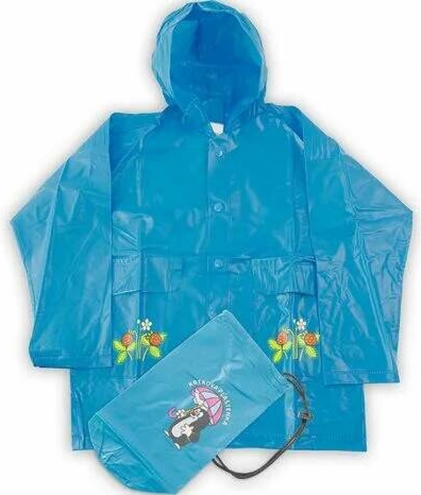 Pláštěnka je vyrobena z nepromokavého materiálu a má zapínání na patentky.