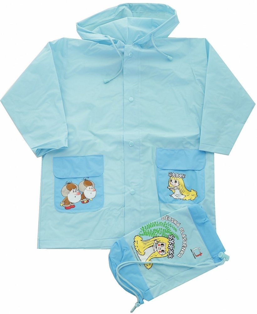 Dětská pláštěnka s motivem Kouzelná školka vyráběná v barvě zelené a modré ve velikosti 6. Součástí pláštěnky je i pytlíček na její uložení. Vyrobeno z materiálu PEVA, jehož výhodou je nižší hmotnost oproti PVC, odolnost proti nižším teplotám a recyklovatelnost.