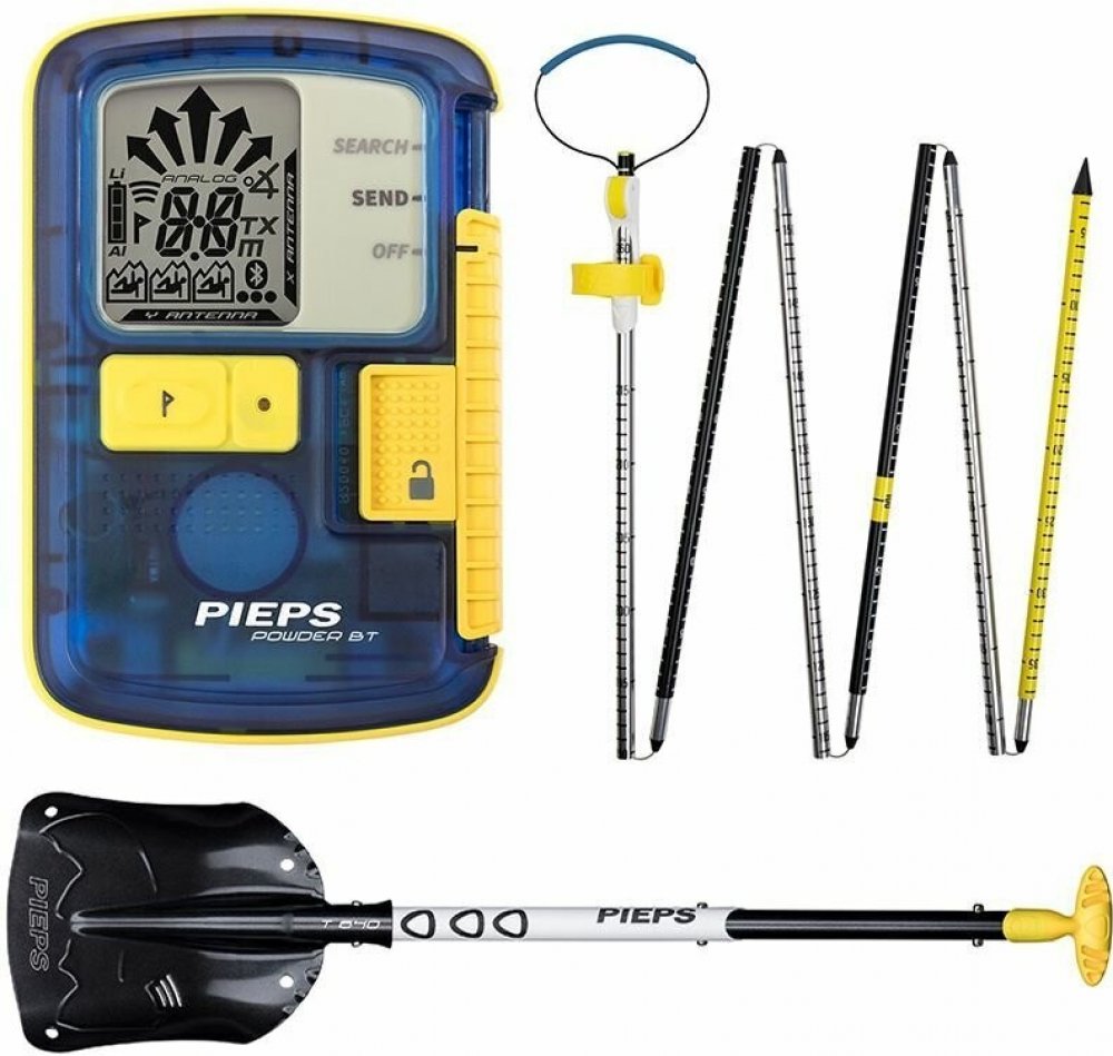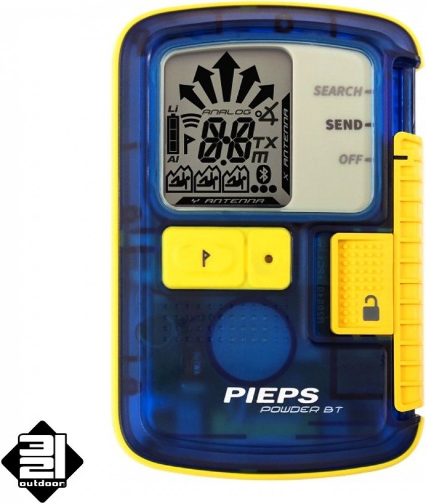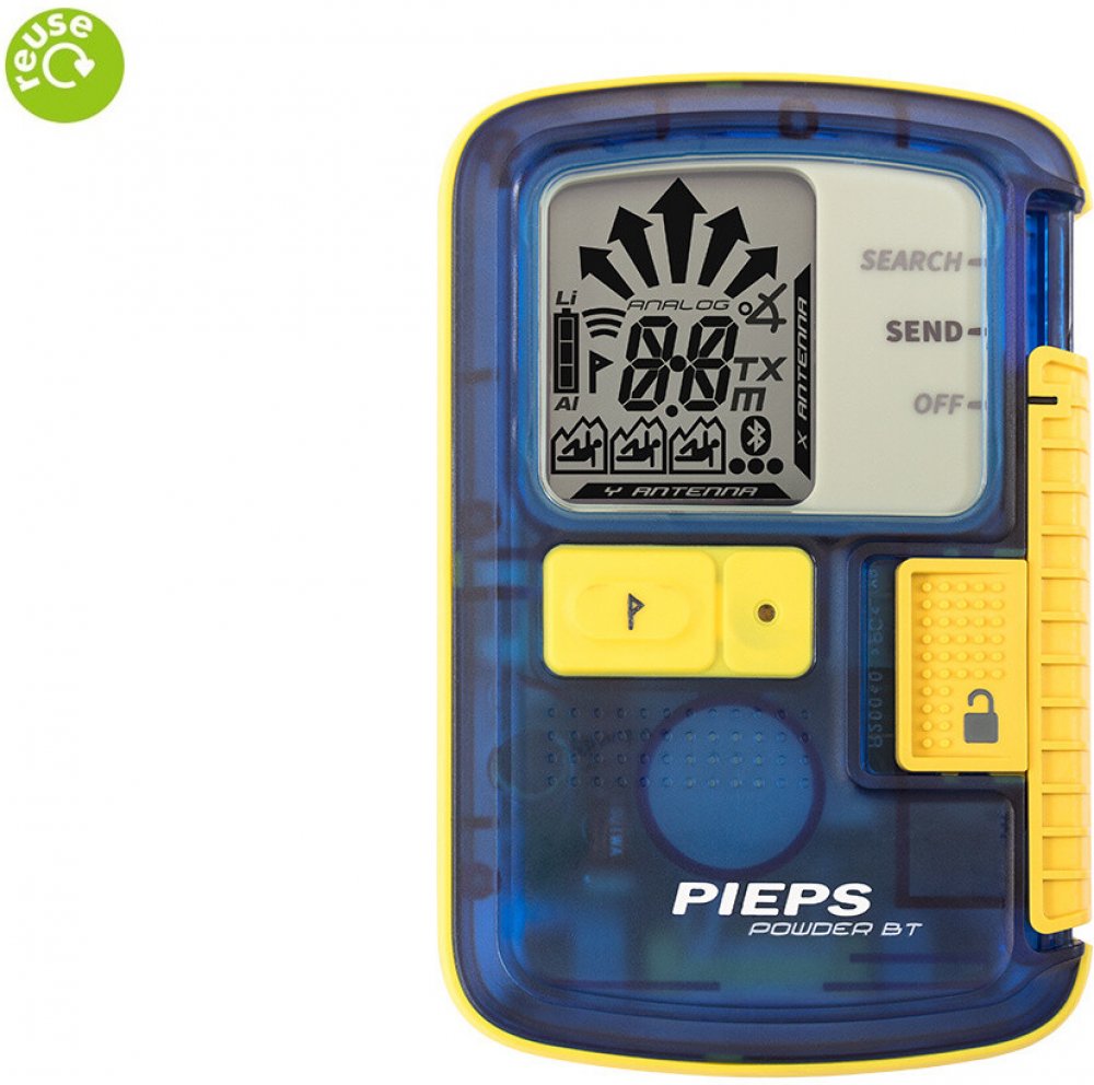 PIEPS Powder BT je 3-anténový digitální lavinový vyhledávač jehož hlavními rysy jsou maximální rozsah 60 m, provozní doba 300 hodin při provozu s lithiovými bateriemi v režimu vysílání a praktická správa zařízení přes Bluetooth a aplikaci PIEPS. Mezi další přednosti patří např. velký osvětlený displej, který zaručuje dobrou čitelnost za všech světelných podmínek. V případě rušení vysílací antény elektronickými zařízeními nebo kovem dochází k automatickému přepnutí na druhou anténu. Díky funkci Auto-Search-To-Send se vyhledávač automaticky přepne z režimu vyhledávání do režimu přenosu. Funkce se aktivuje, když je přístroj po určitou dobu zastaven (např. když je zasypán, přístroj se automaticky přepne). Pomocí podpory iProbe lze vyhledávač dočasně deaktivovat pomocí inteligentní sondy iProbe. Následující nejsilnější signál se automaticky zobrazí na lavinovém vyhledávači. Funkce skupinové kontroly slouží ke kontrole aktivity a odeslání parametrů partnerského lavinového zařízení. Proto je vhodné před každou prohlídkou provést skupinovou kontrolu. Funkce označování (markování) nabízí možnost hledání více zasypaných s možnosti deaktivací nejsilnějšího signálu. Doba provozu zařízení závisí například na tom, které baterie se používají k provozu. Minimální doba provozu v režimu vysílání je přibližně 200 hodin při alkalických bateriích, ale při použití lithiových baterií se zvyšuje minimálně na 300 hodin.