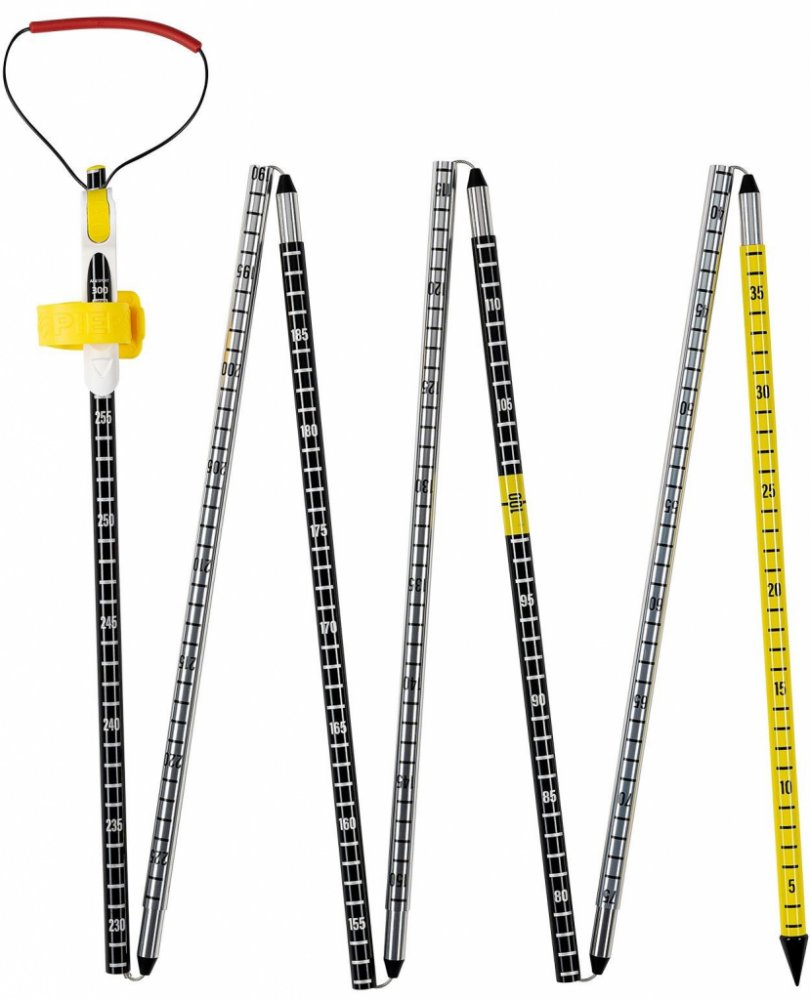 Nová verze lavinové hliníkové sondy Pieps vyráběná ve délce 300cm. Sonda umožňuje velice rychlé sestavení díky širokému poutku a náběžným hranám - sondu lze složit i za letu. Ke stažení slouží praktický silikonový pásek. Vlastnosti: Rychlé sestavení pomocí náběžné hrany a klipu Větší průměr tubusu zajistí větší pevnost a tuhost při sondování Protiskluzové pásky pro pohodlnou práci v rukavicích Stupnice po 1cm + označení jednotlivých dílů různou barvou Barevně odlišené segmenty Zvýrazněný délkový metr Stahovací silikonový pásek Barevně odlišené délky sond Obal součástí balení