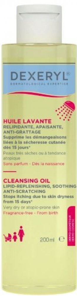 DEXERYL Mycí olej je určený pro problematickou, atopickou pokožku. Při mytí zklidňuje suchou kůži a zamezuje svědění, které souvisí se suchostí pokožky. Je vhodný pro velmi suchou kůži se sklonem k atopii. Není parfemovaný. Olej je vhodný i pro ty nejmenší děti již od narození. Jemně čistí při zachování kožní bariéry.
